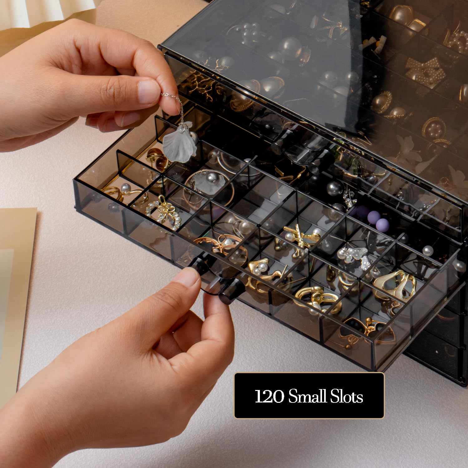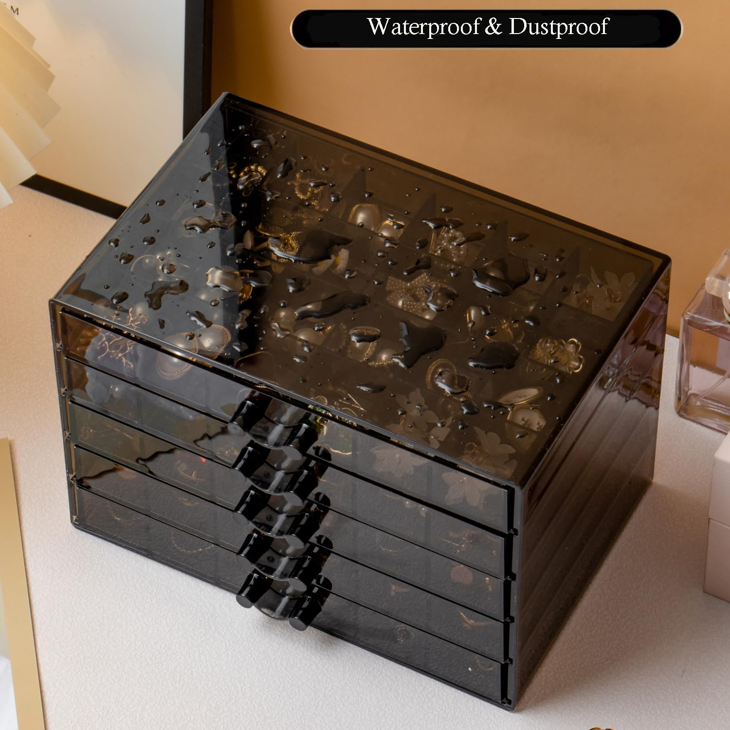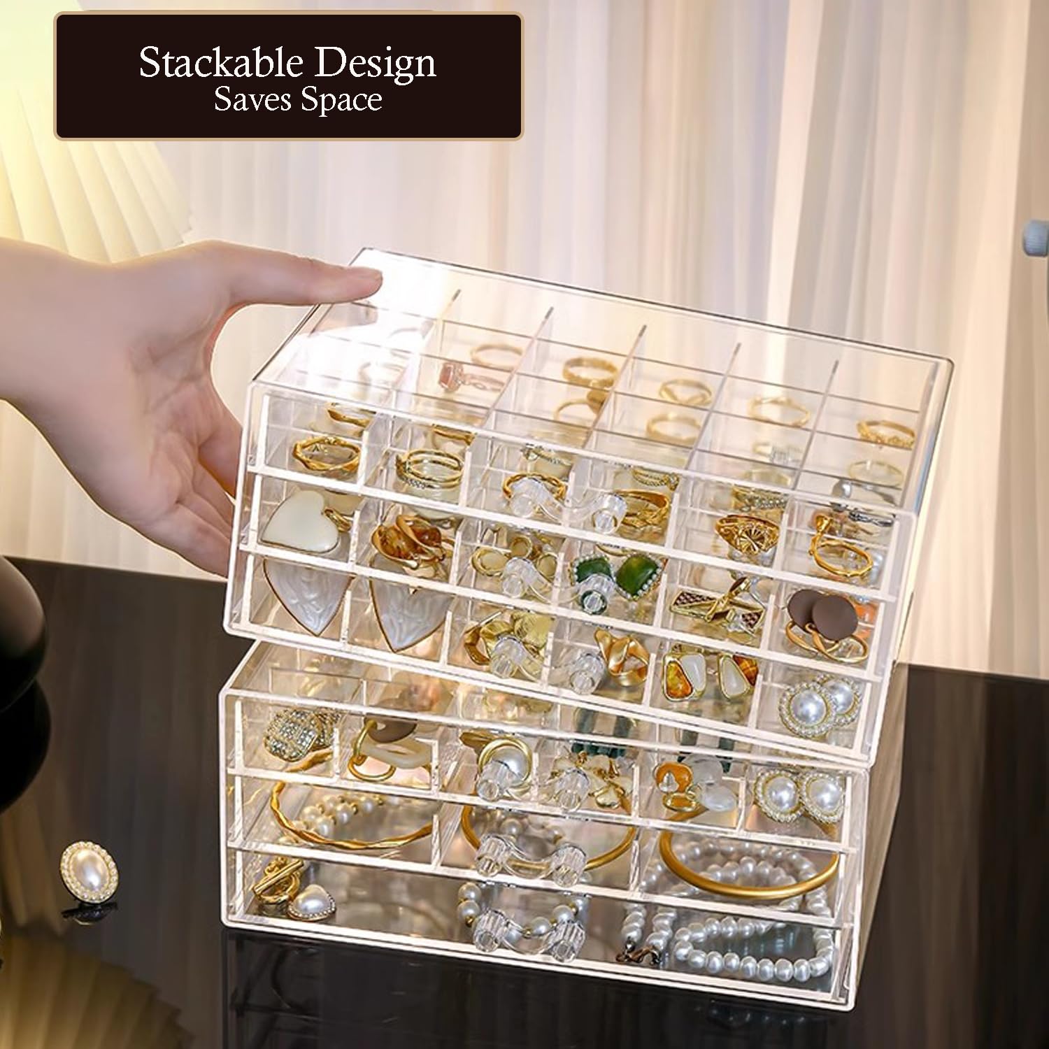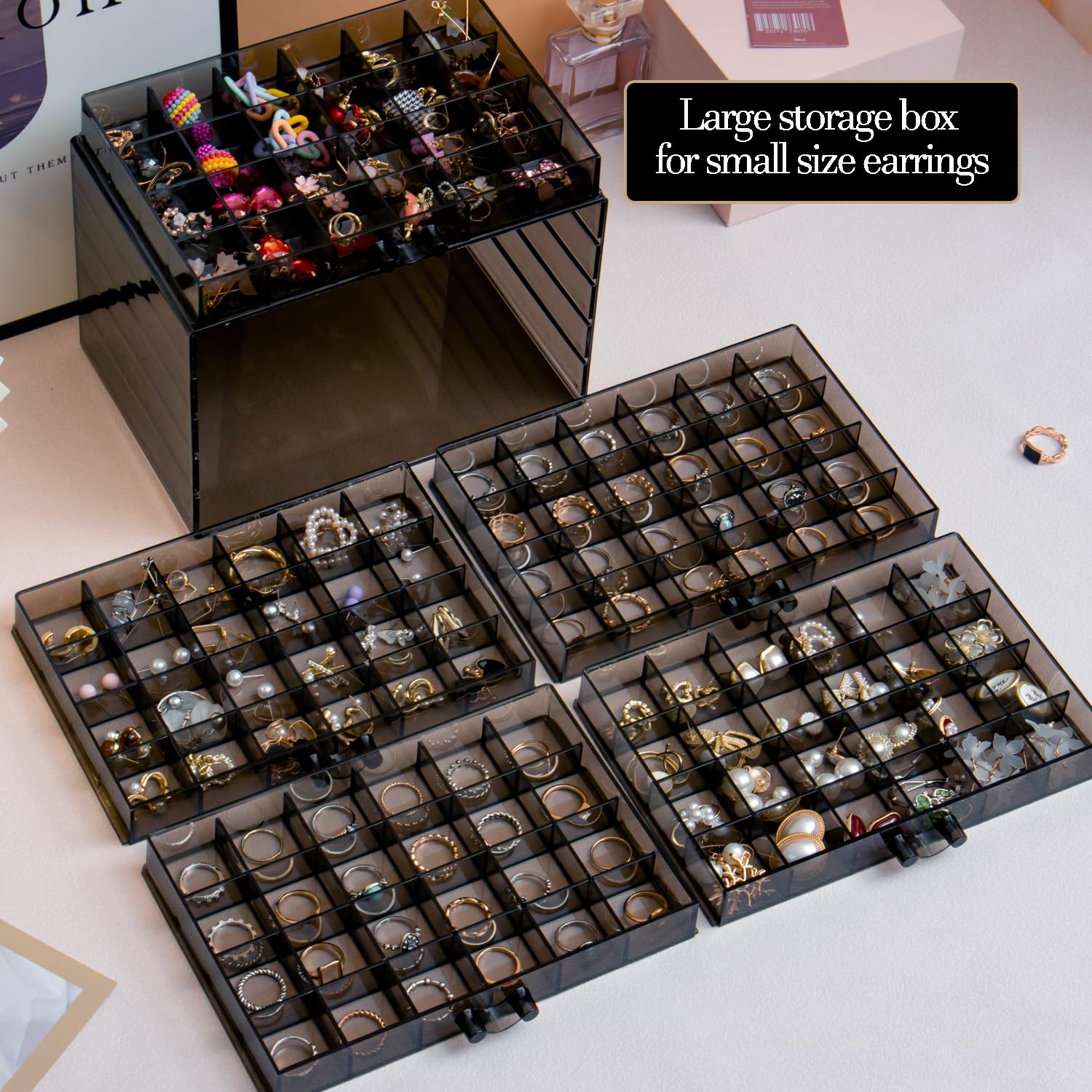 イヤリングオーガナイザー アクリルジュエリーホルダーオーガナイザー 引き出し5個付き ジュエリーボックス 女性用 積み重ね可能なイヤリング収納ケース