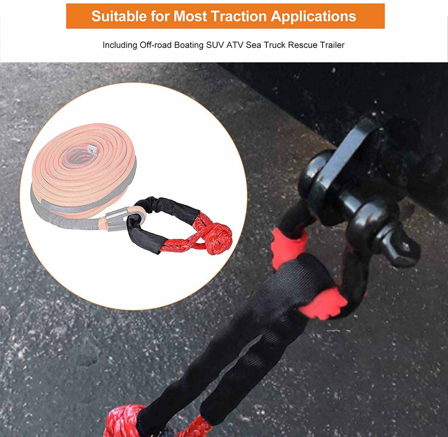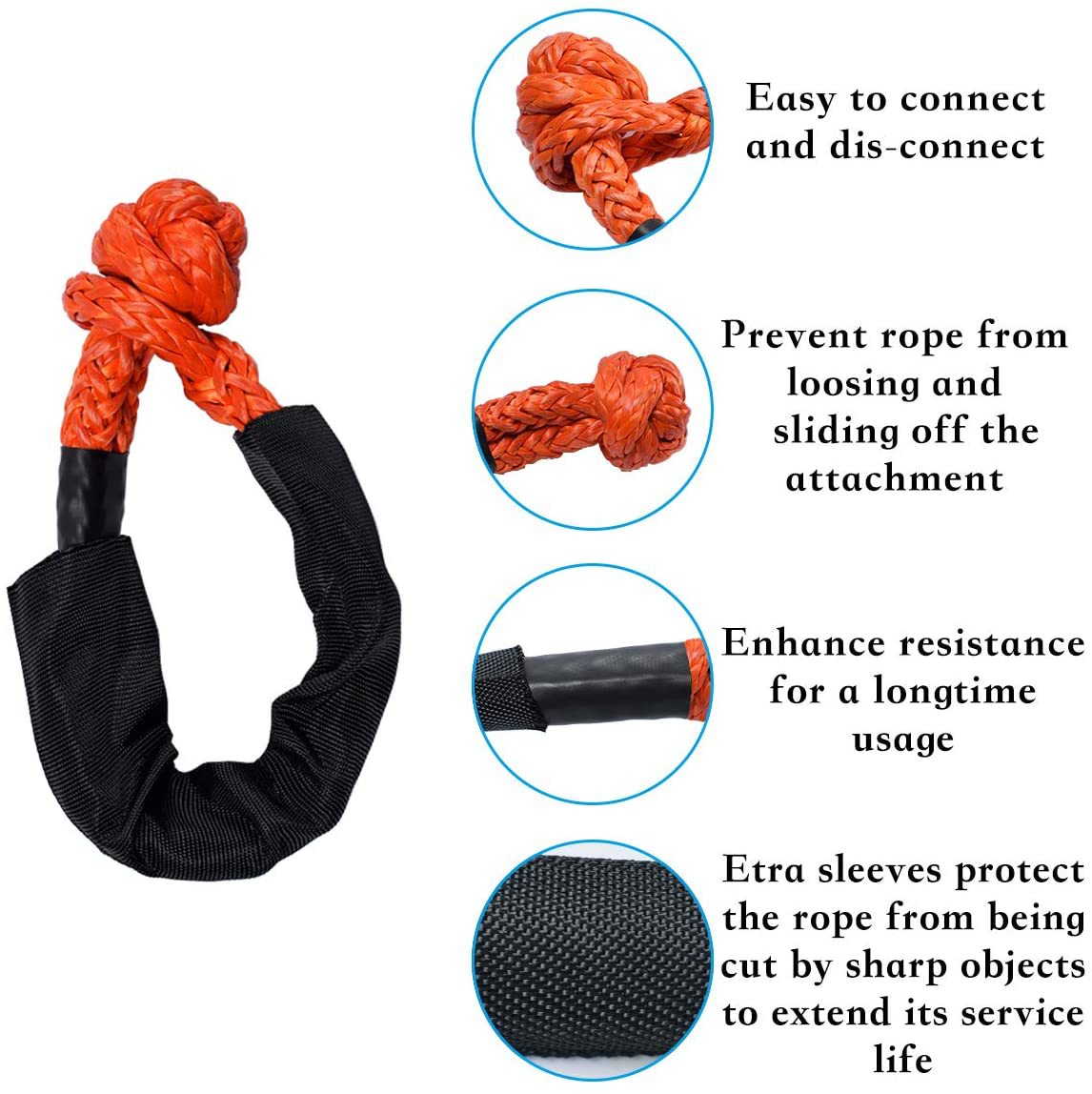 けん引ロープ 2点セット 17t ソフ ブラック オレンジ イエロー グリーン ブルー レッド