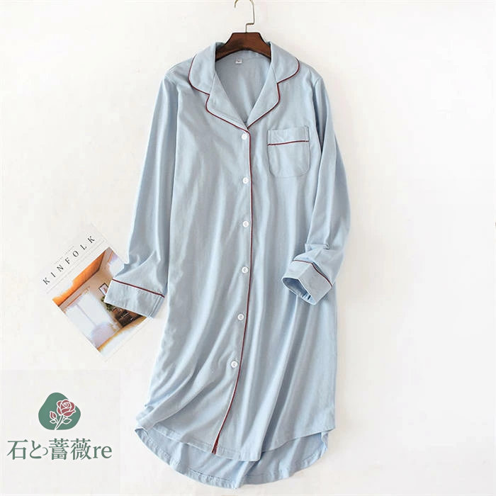 綿100% ルームワンピース レディー ブルー ネイビー M L