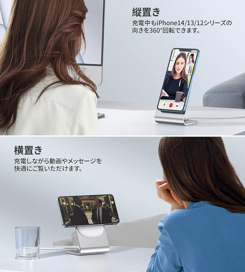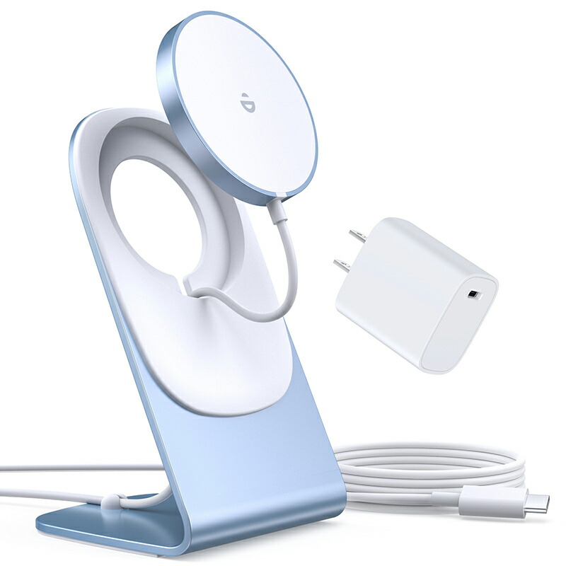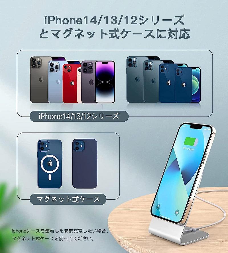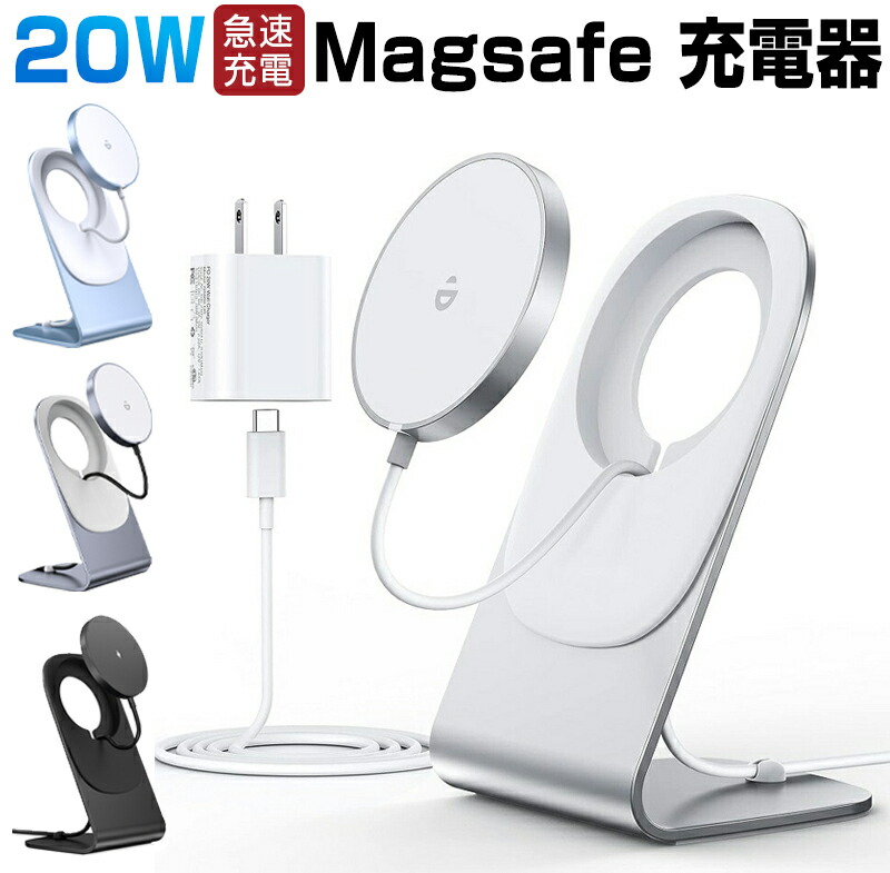 ワイヤレス充電器 magsafe充電器 マグネット式 iPhone15 14 13 12シリーズ対応 ワイヤレス充電スタンド 置くだけ充電 USB-Cアダプター付属 USB-Cケーブル付き 急 20W