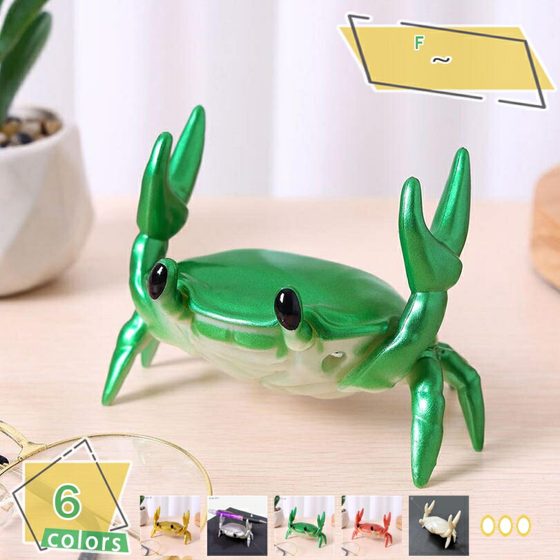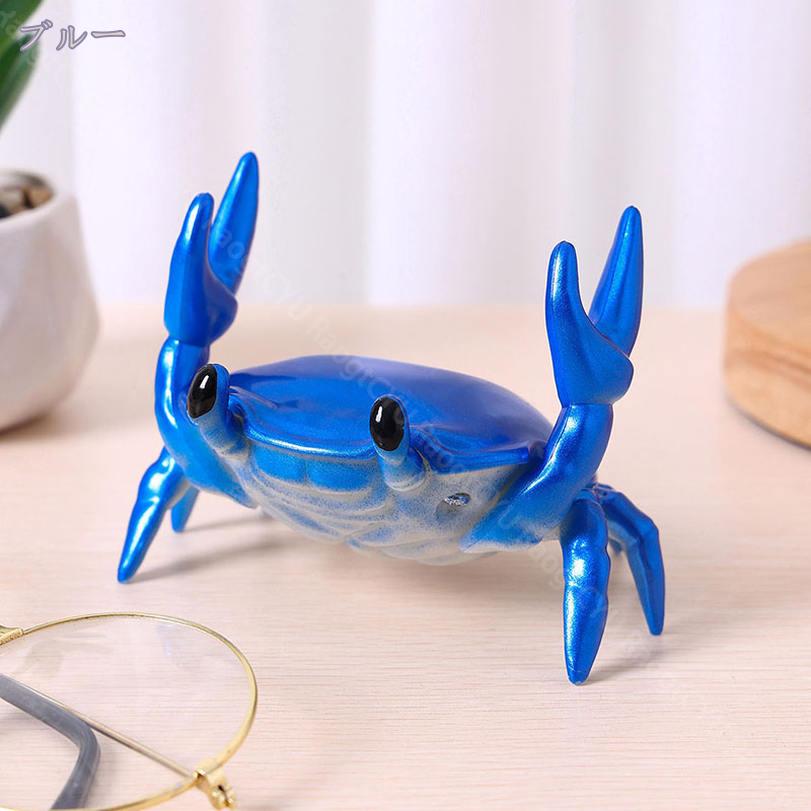カニ 置物 カップル の スマホ立て ゴールド シルバー ブルー グリーン 白 赤