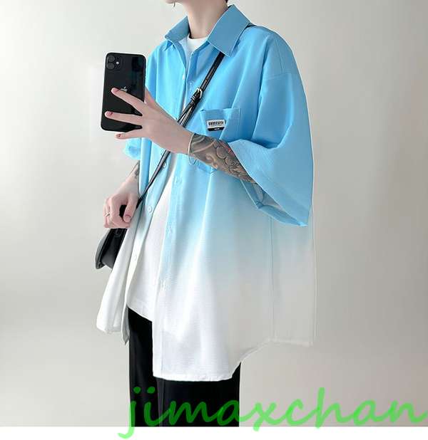 新生活 生活応援 グラデーション シャ トップス カジュアルシャツ 続々入荷中 ピンク ブラック ブルー グリーン M L XL 2XL 3XL 4XL 5XL