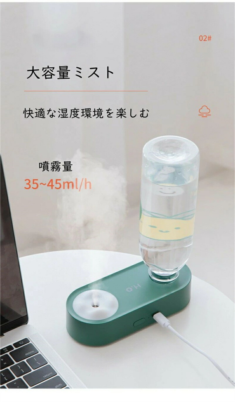加湿器 卓上 ペットボトル 省エネ 簡 ホワイト グリーン ピンク