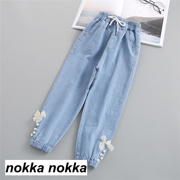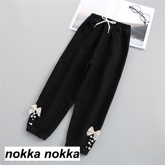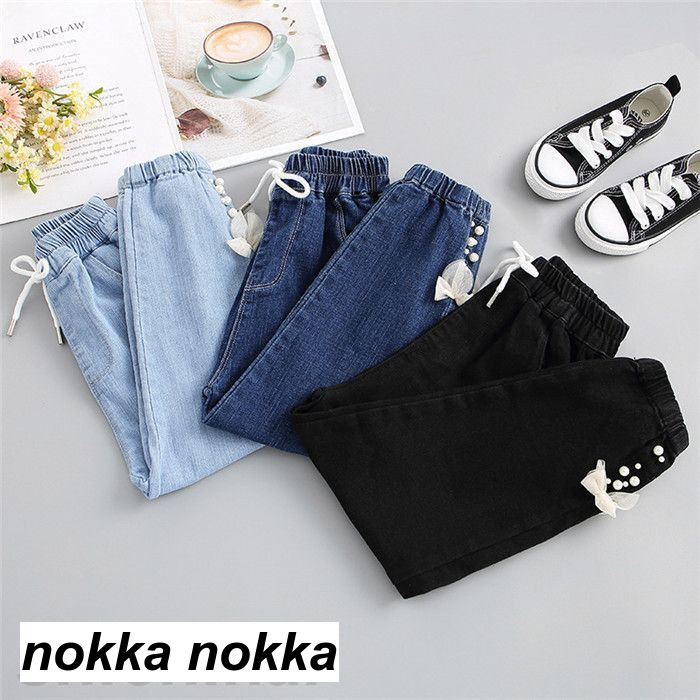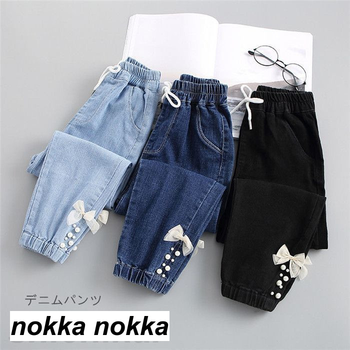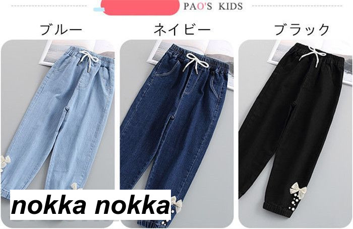 デニムパンツ 子供服 ジーパン リポン キッズ ベビー マタニティ 新作 ブルー ネイビー ブラック 120cm 130cm 140cm 150cm 160cm 170cm