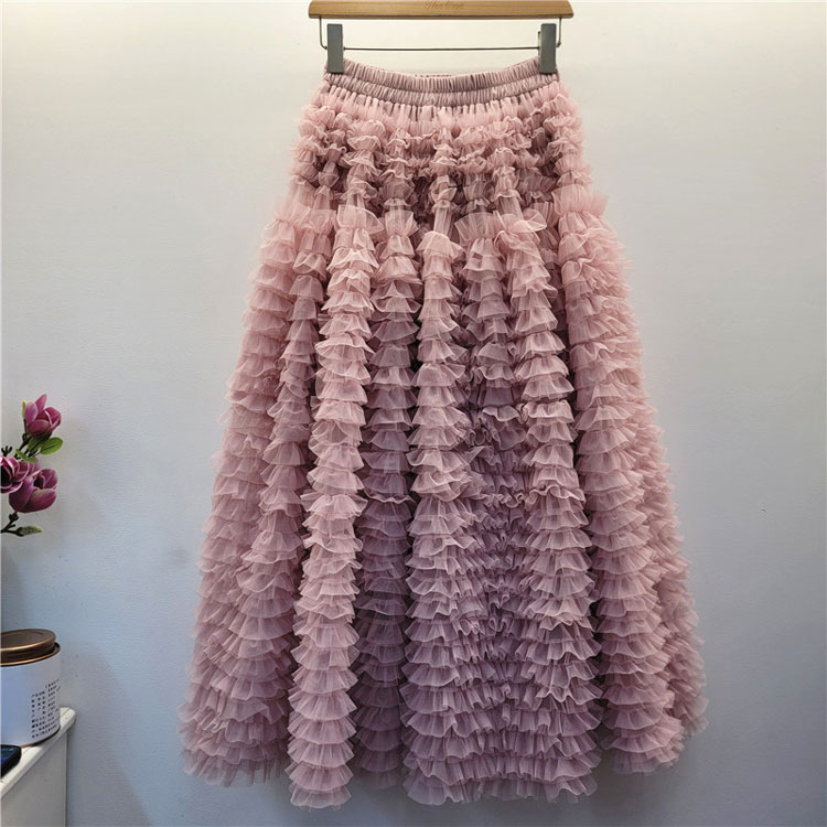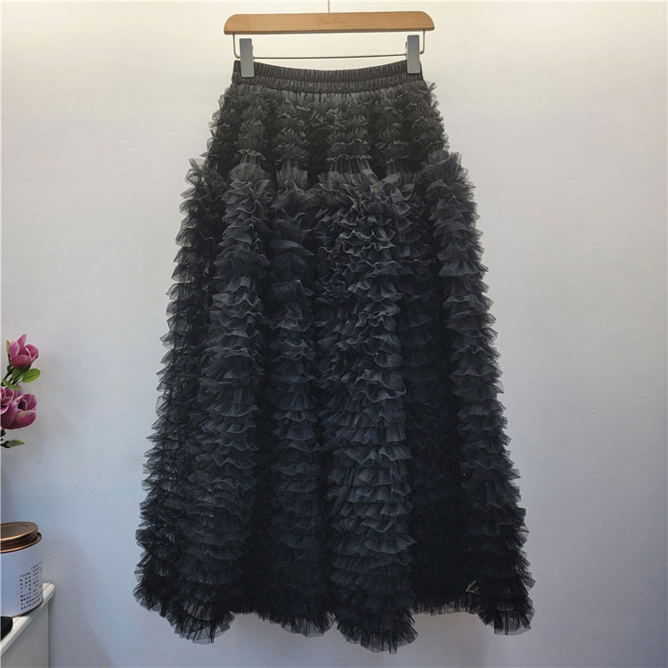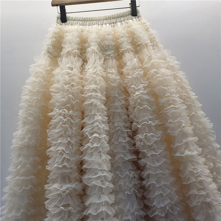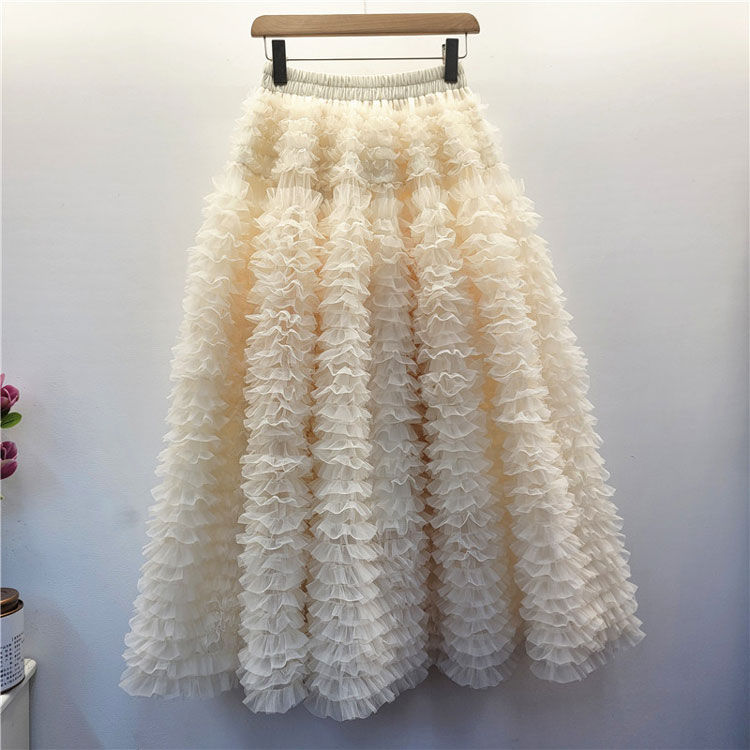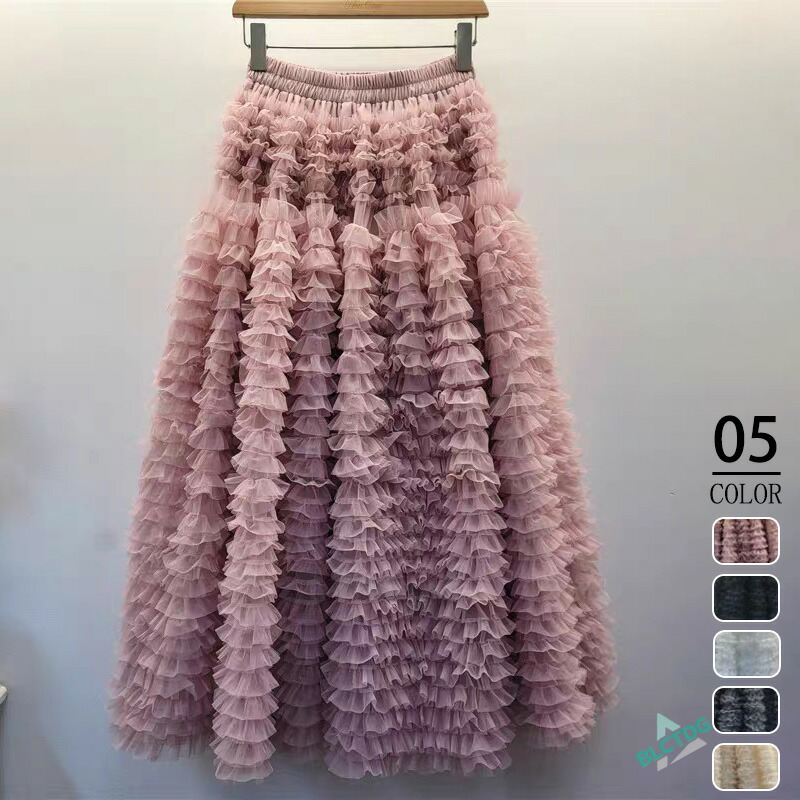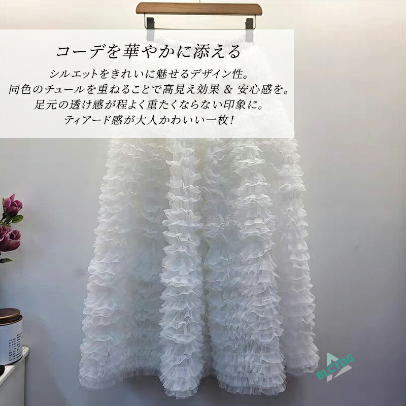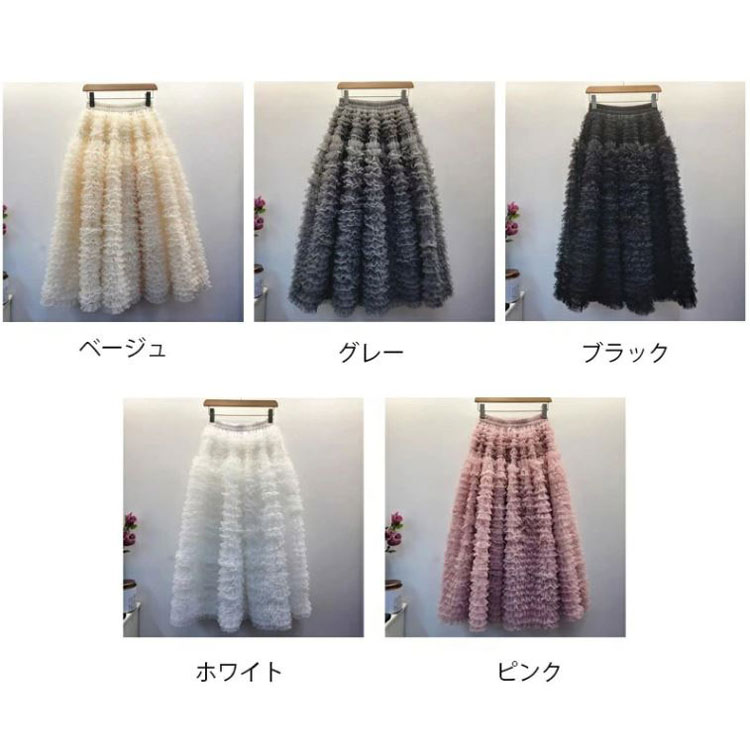 ボリュームチュールロングスカート スカ ボトムス スカート 人気 ベージュ グレー ブラック ホワイト ピンク