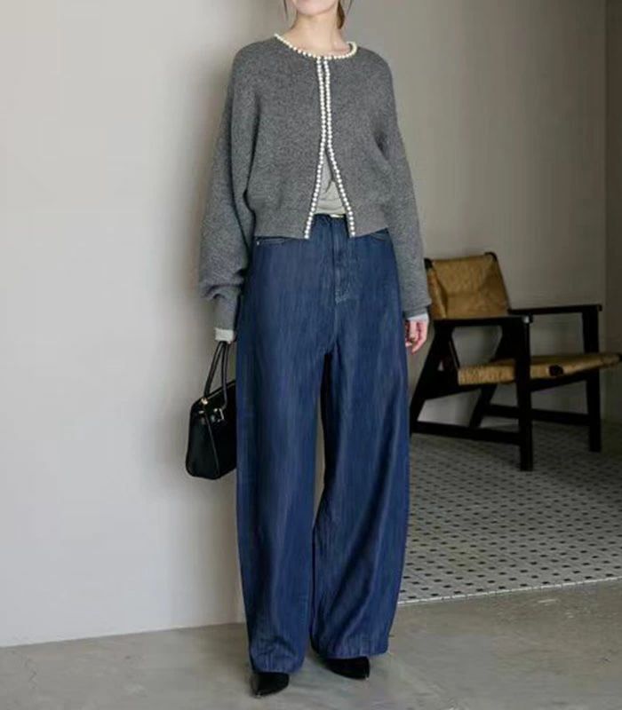 デニムパンツ ビジュー付き