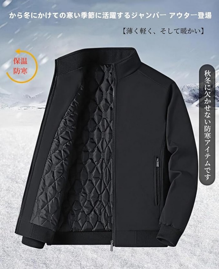 【デザイン】シンプルなデザインで男性魅力をよく見せてくれます。襟部分は小振りな襟デザインでスマートな印象を与えます。襟元、袖口や裾のリブによってシルエットが引き締まって、キレイに見えるだけでなく、外気をシャットアウトし、防風防寒性も高めます。 両サイドと内側にポケットがあり、小物の持ち運びに便利。