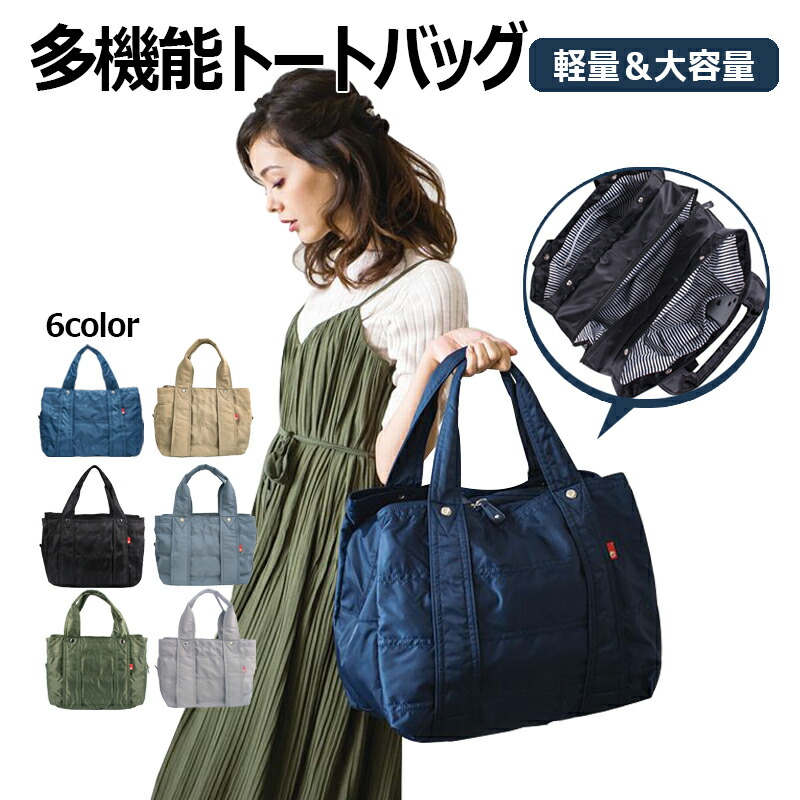 トートバッグ レディース ナイロン製 バッグ レディースバッグ マザーズバッグ 通販 ブルー ブラック グリーン カーキ色 ライトグレー ライトブルー