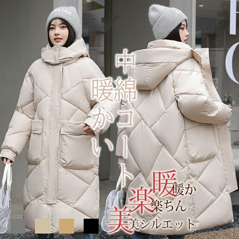 中綿コート レディース ロング コート レディースファッション 豊富な品揃え ブラック カーキ ホワイト グレー M L XL 2XL 3XL