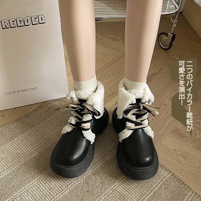 ブラッ ホワイト バイカラー ボア 裏 レディース靴 スノーシューズ 続々入荷中 ブラック ホワイト 35(22.5cm) 36(23cm) 37(23.5cm) 38(24cm) 39(24.5cm) 40(25cm)