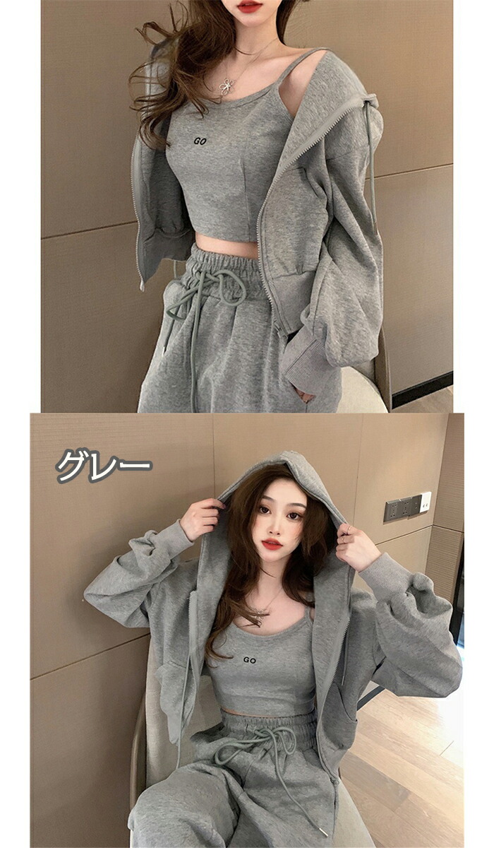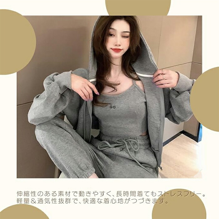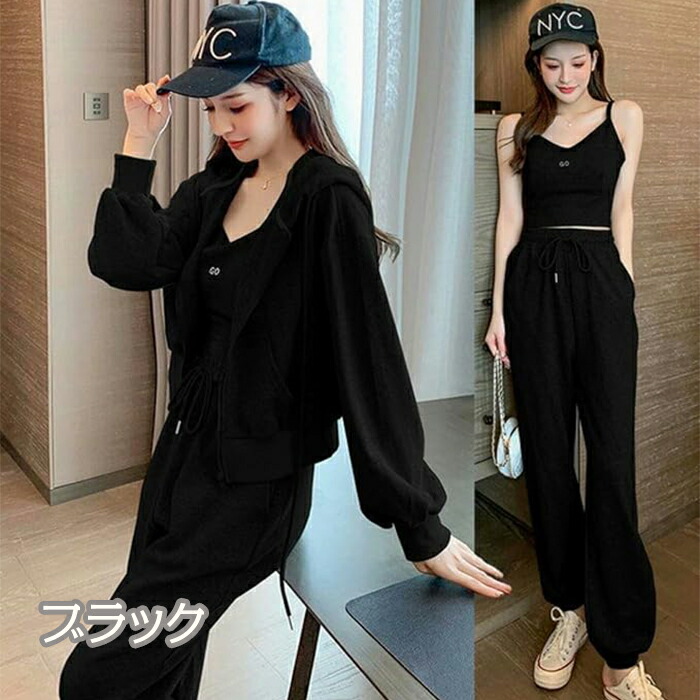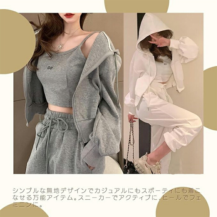 スウェット レディース ジャージ セッ トップス パーカー 新作 ブラック ホワイト グレー s M L XL 2XL 3XL
