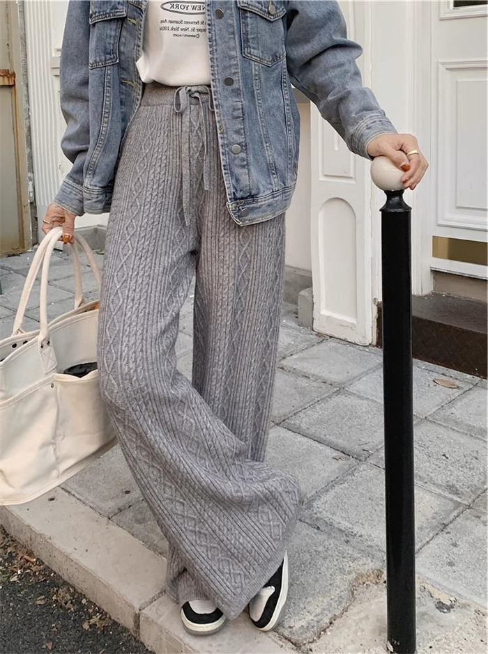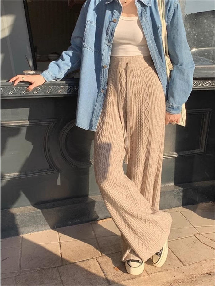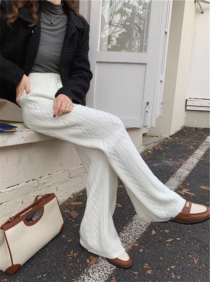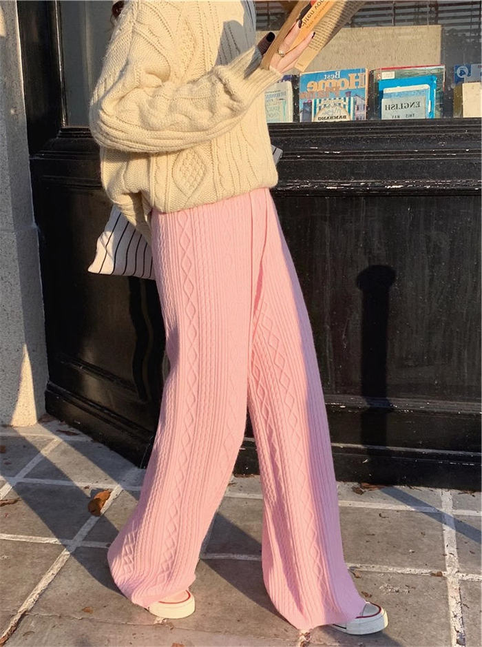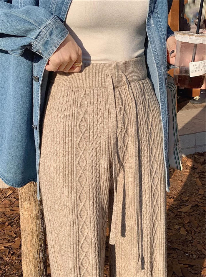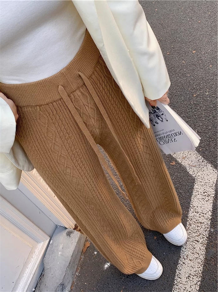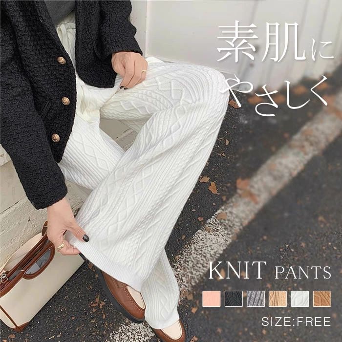 レディース ニットパンツ 春 秋冬 ロ ボトムス パンツ 超目玉商品 ベージュ ピンク ホワイト ブラック グレー キャメル