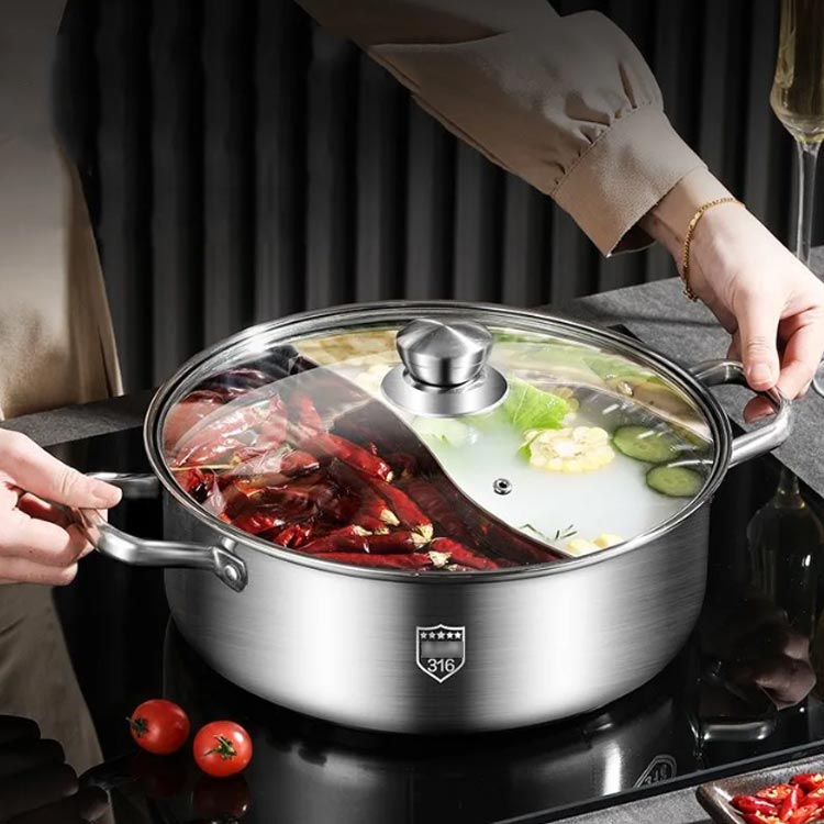 仕切り鍋 二食鍋 IH対応 二色鍋 中 28cm 30cm 32cm