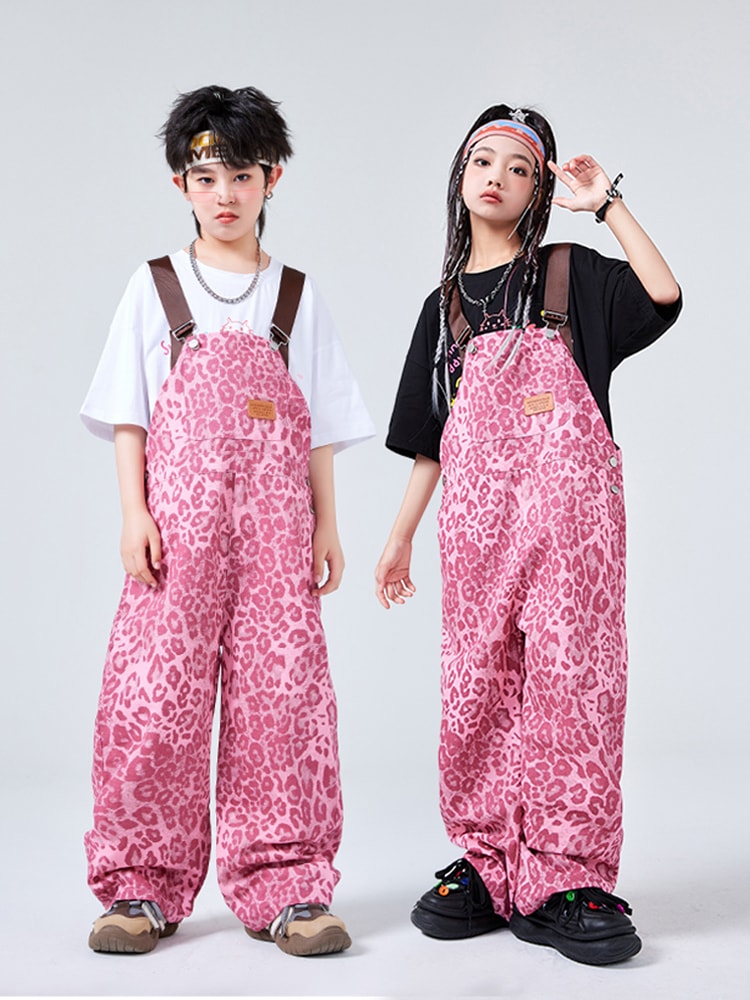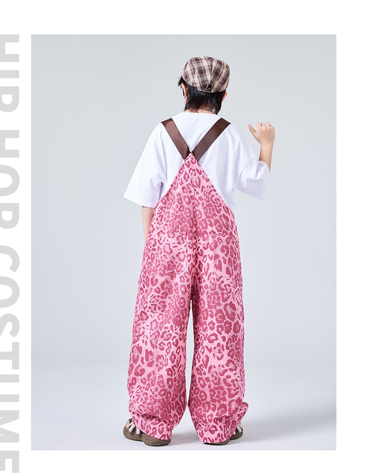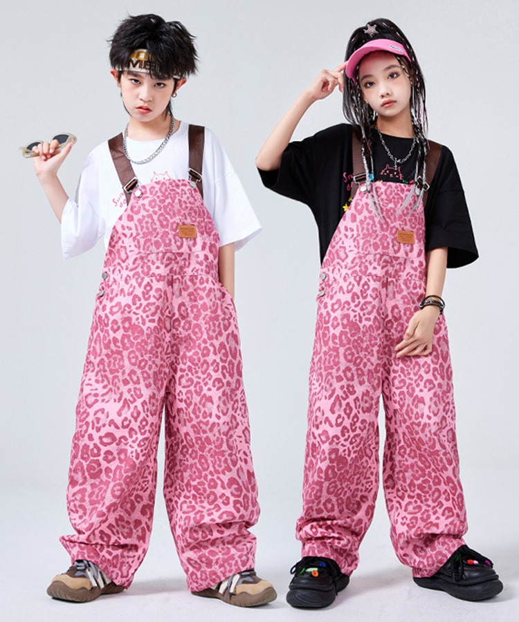 ダンス衣装 サロペット ヒョウ柄 ピン キッズ スーツ カジュアルセットアップ カジュアルパンツセット 新登場! 110cm 120cm 130cm 140cm 150cm 160cm 170cm 180cm 白tシャツ単品 黒tシャツ単品 サロペット単品 白2点セット 黒2点セット