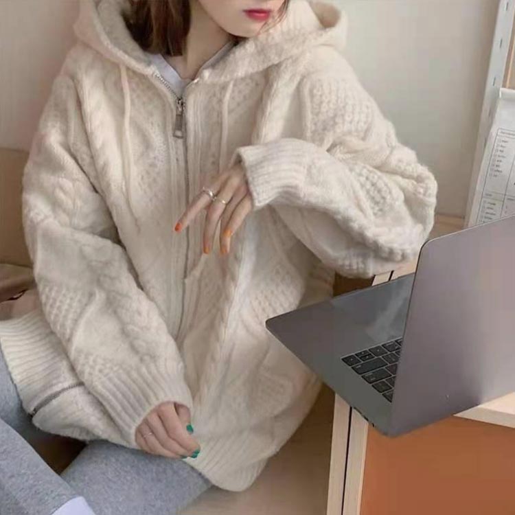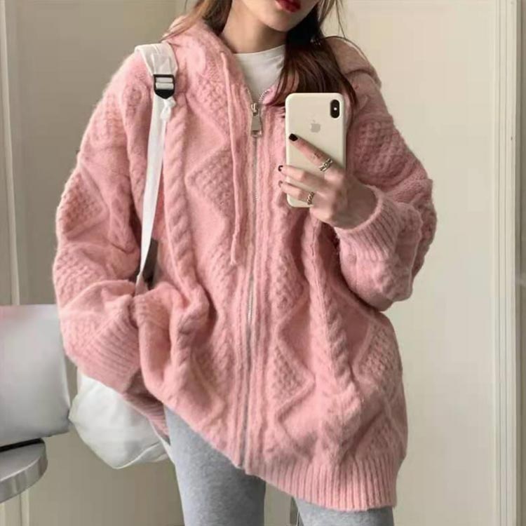 秋冬 ニット パーカー 長袖 ゆったり レディースファッション 早い者勝ち ピンク ベージュ コーヒー S M L XL 2XL 3XL