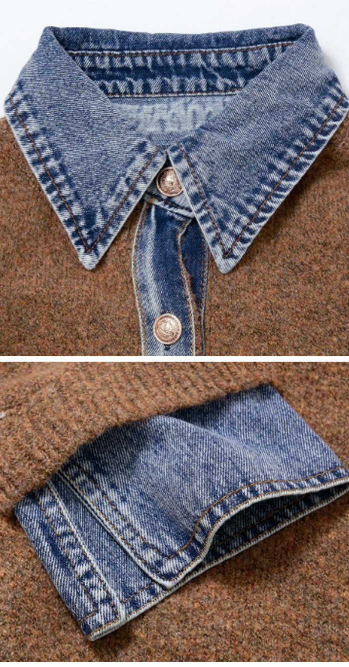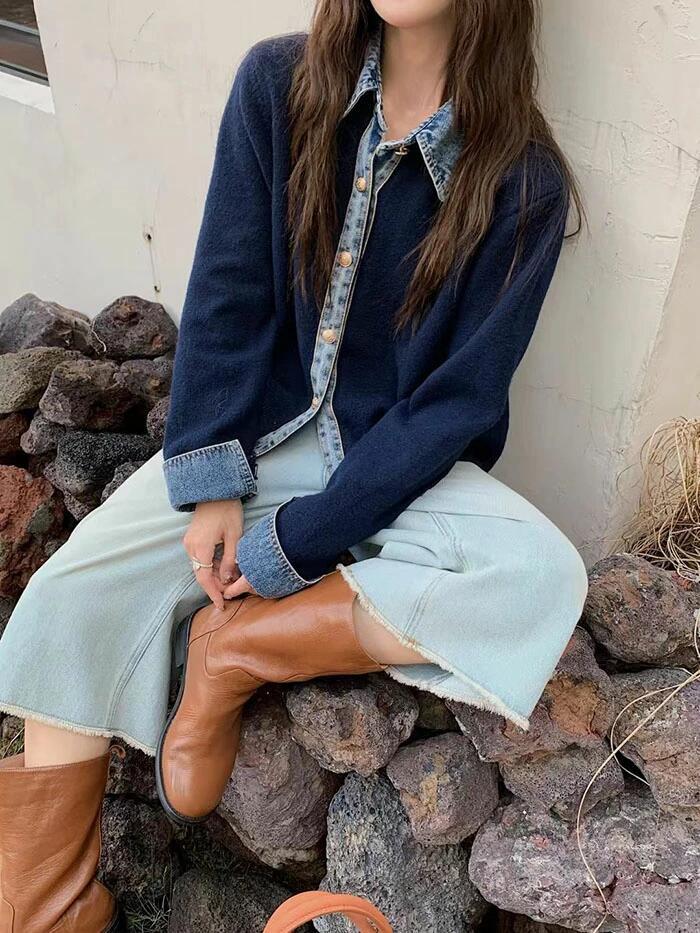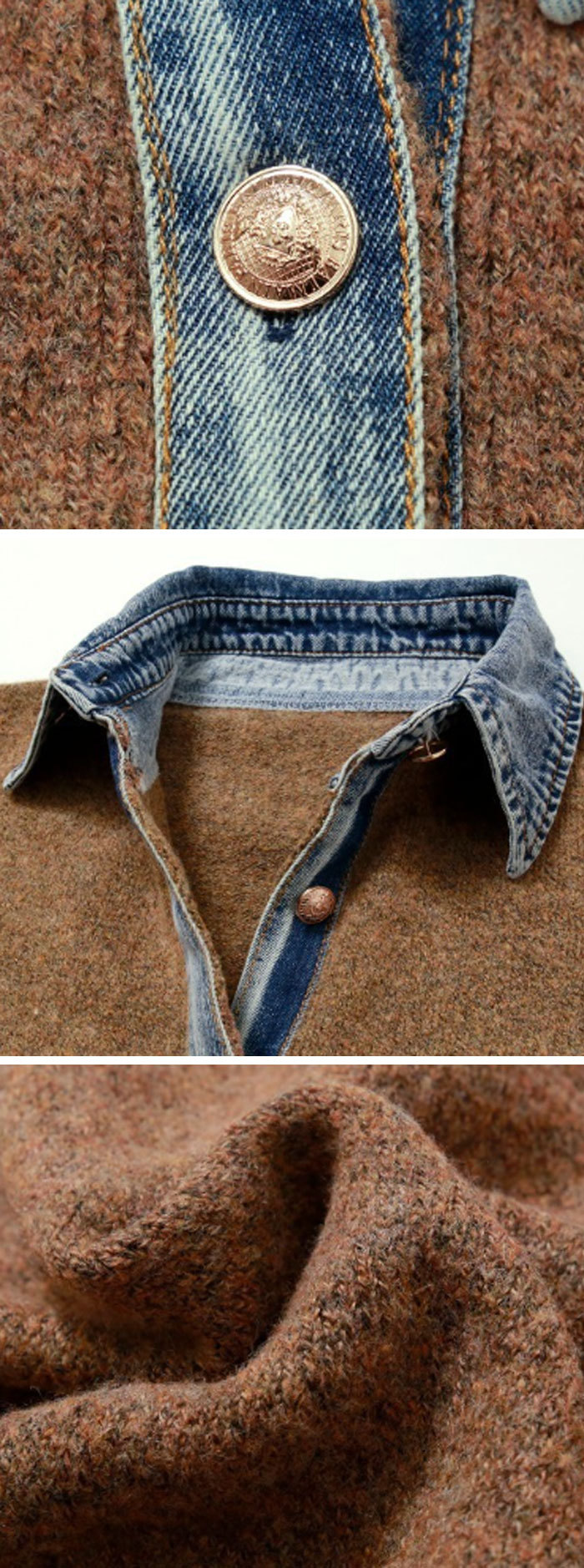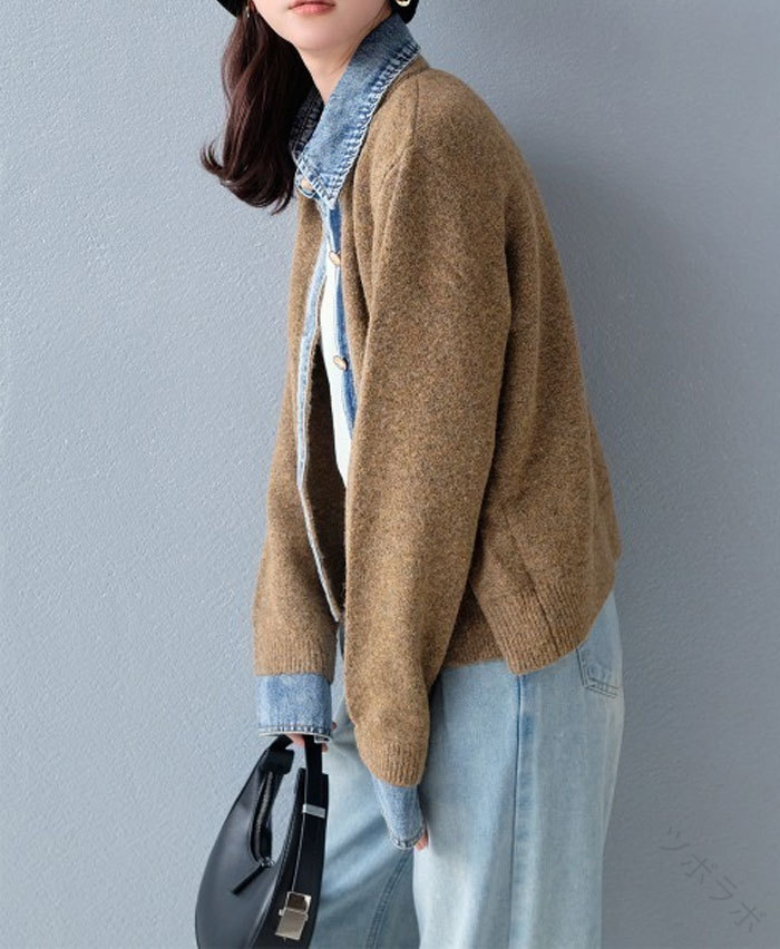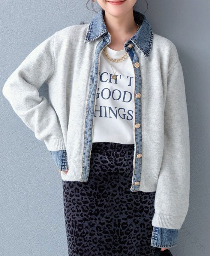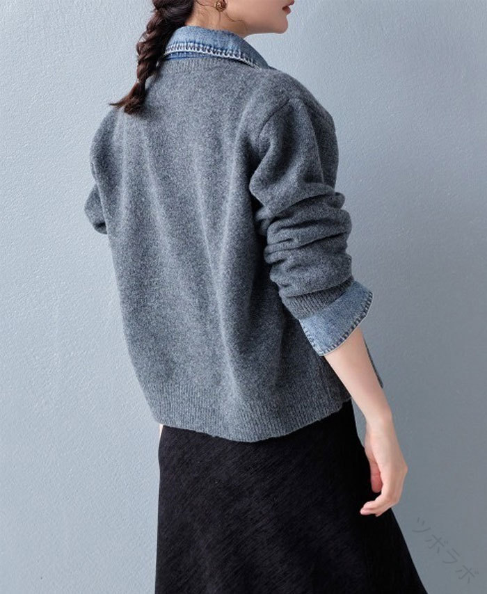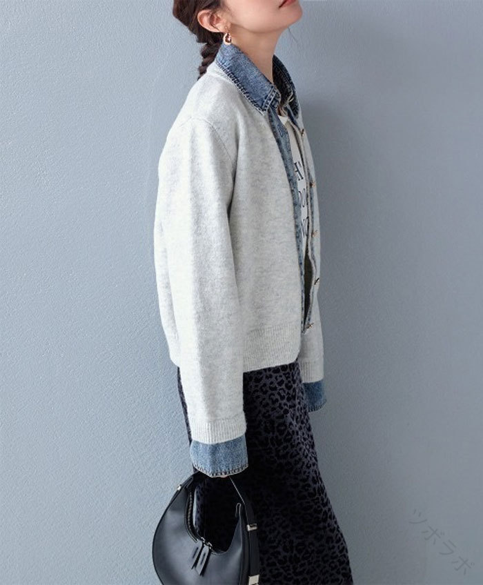 ジャケット ニット レディース 異素材 レディースファッション 新登場! ライトグレー ダークグレー ブラウン ネイビー