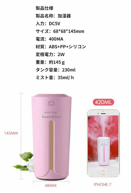 加湿器 ハイブリッド加湿器 常夜灯機能 ホワイト ピンク ブルー グレー