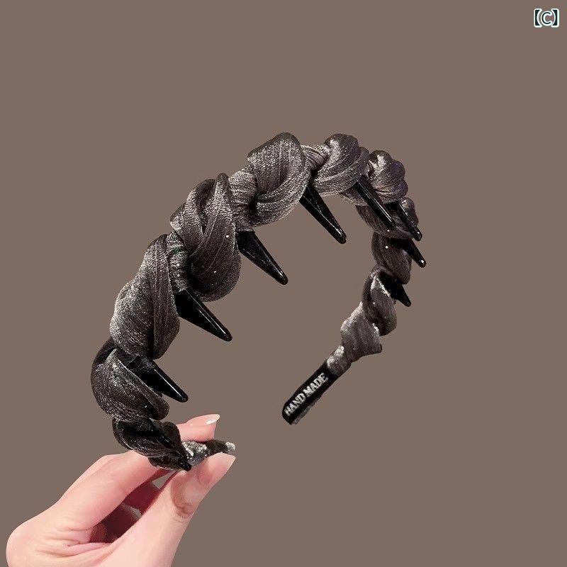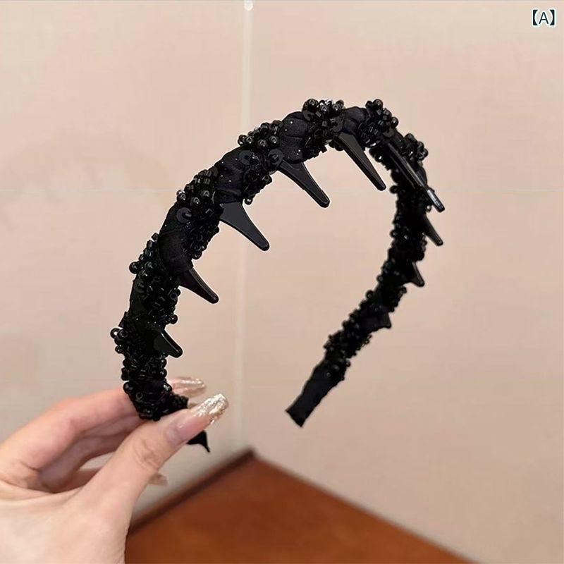 ヘアバンド レディース 高め 軽奢風 バッグ 小物 ブランド雑貨 人気 A:定番黒ビーズ B:1#黒 C:2#シルバーグレー