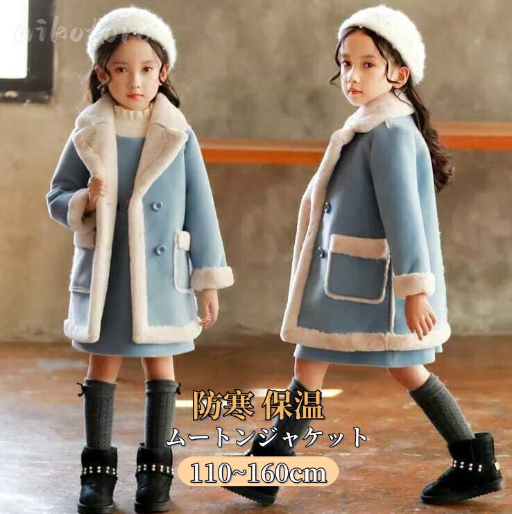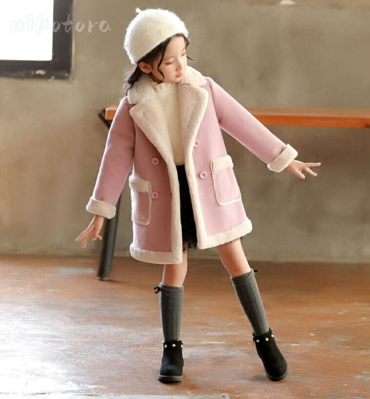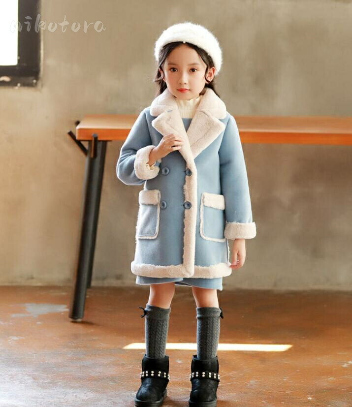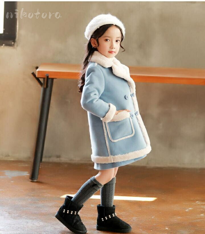 韓国子供服 女の子 裹ボアコート チェ キッズ コート ジャケット 新登場! ブルー ピンク 110cm 120cm 130cm 140cm 150cm 160cm