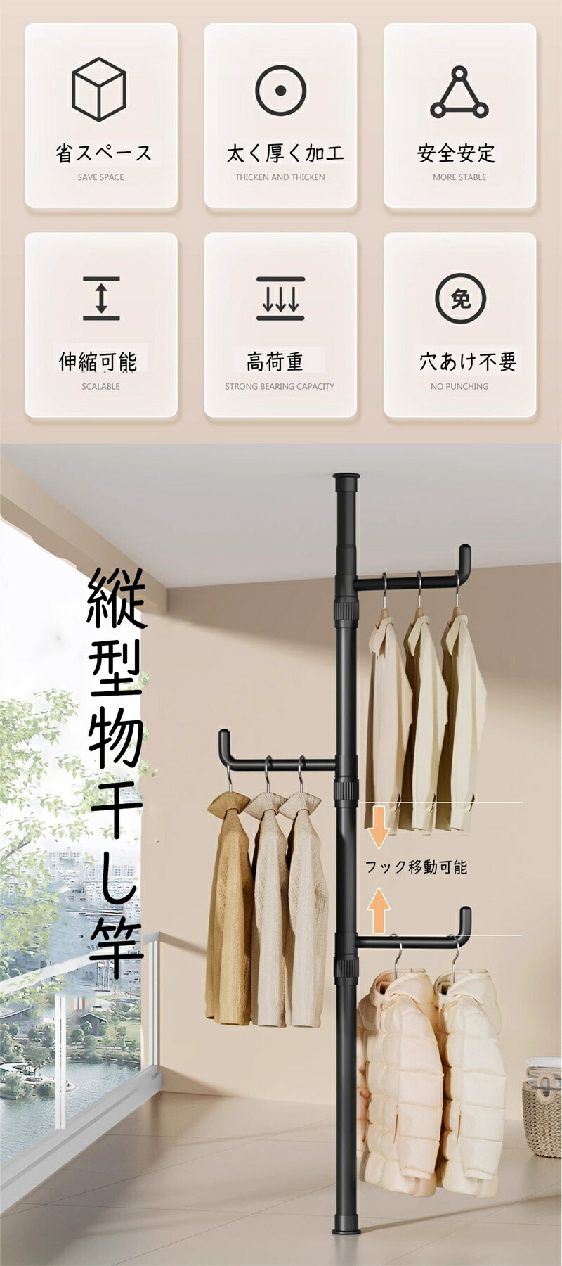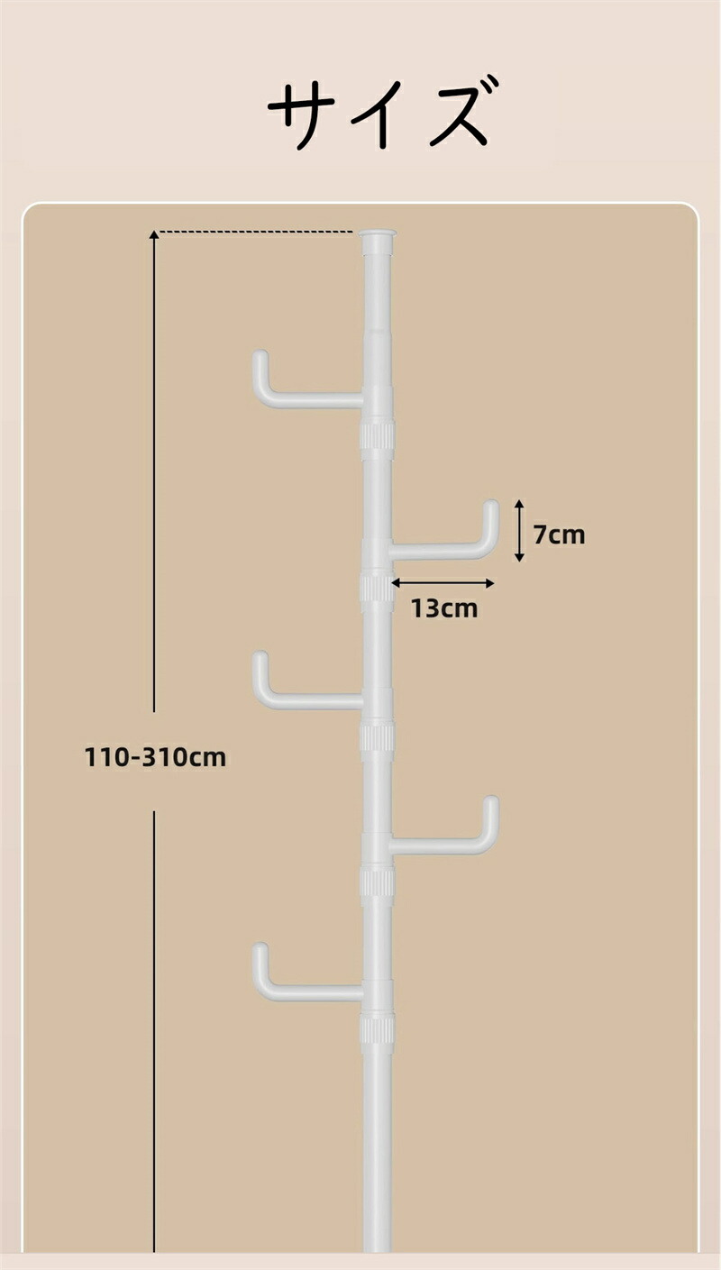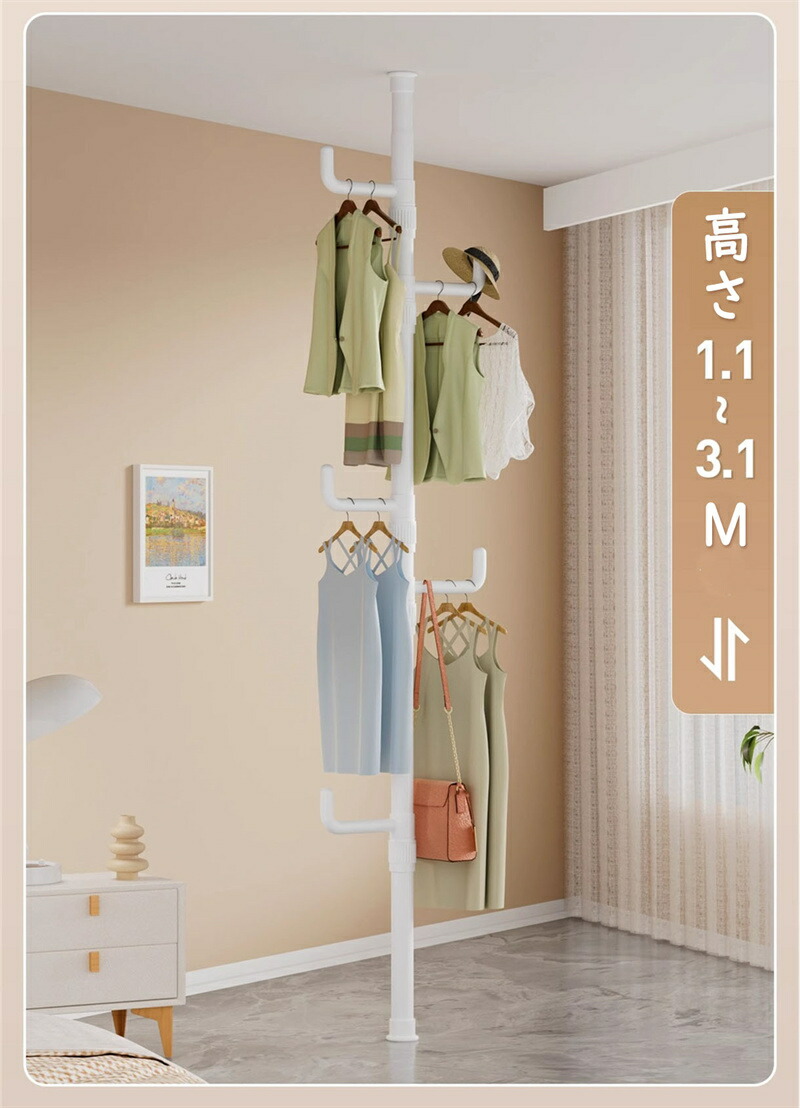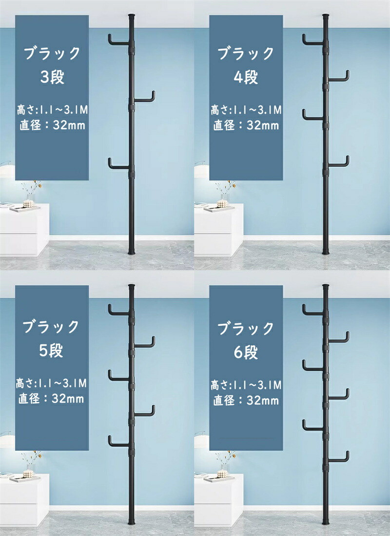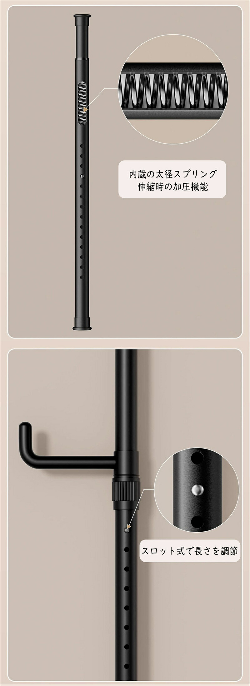 つっぱり式ポール 縦方向伸縮 110~ 3段 4段 5段 6段 ホワイト ブラック パープル グリーン イエロー