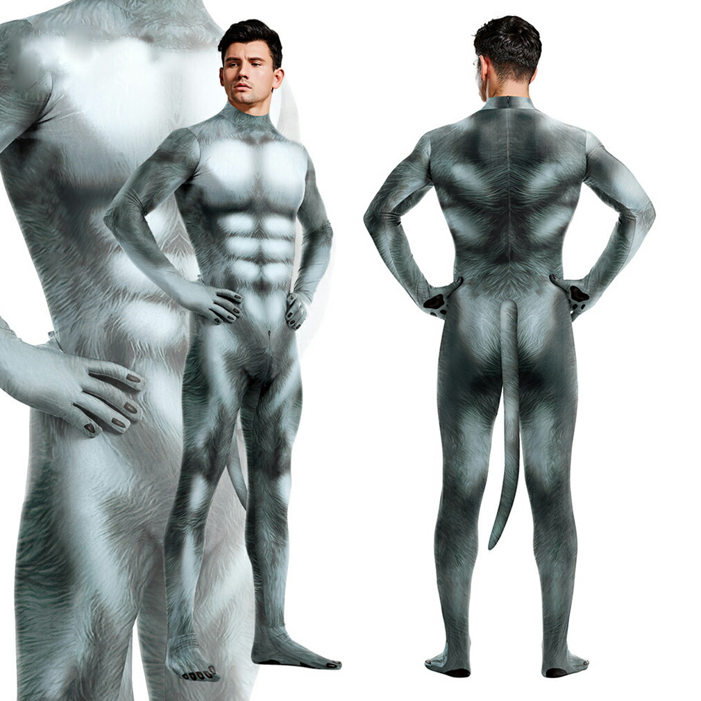 犬 グレー 全身タイツ 大人用 動物仮 ホビー 豊富 S M L XL XXL XXXL