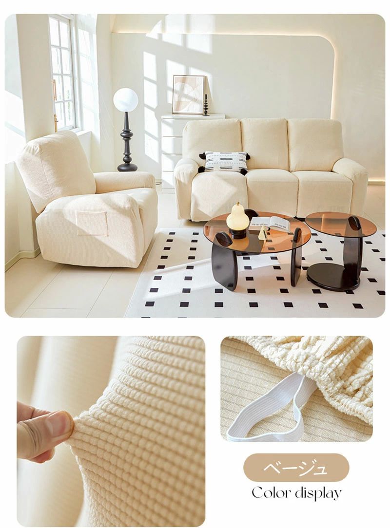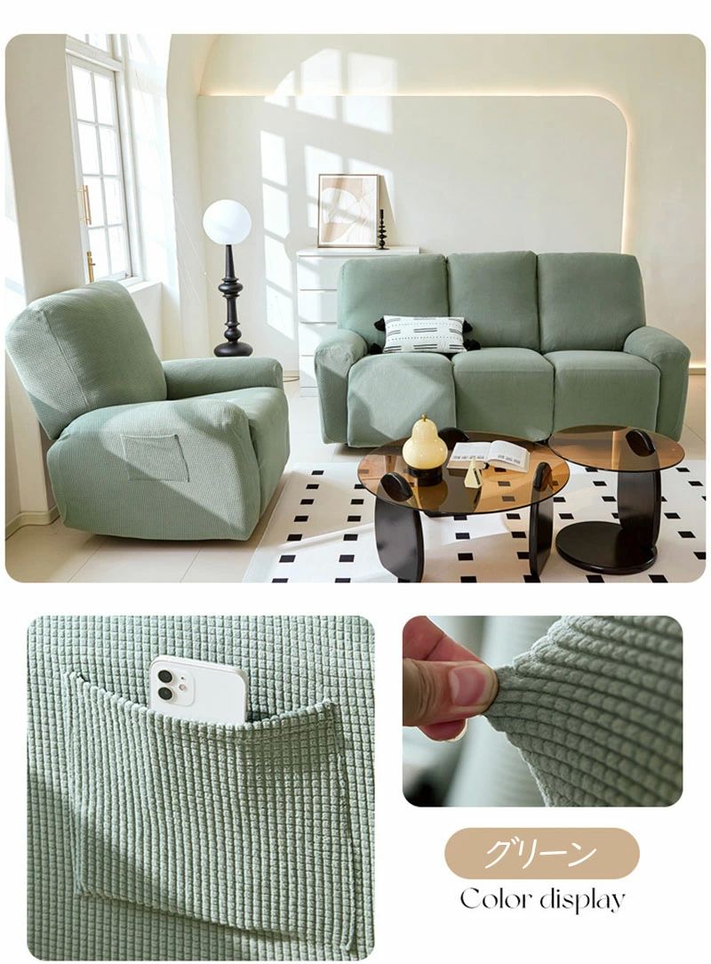 伸び ソファーカバー 電動 リクライニ ベージュ ネイビー マリンブルー ダークグレー グリーン コーヒー ブラウン ピンク 1人掛け 2人掛け 3人掛け