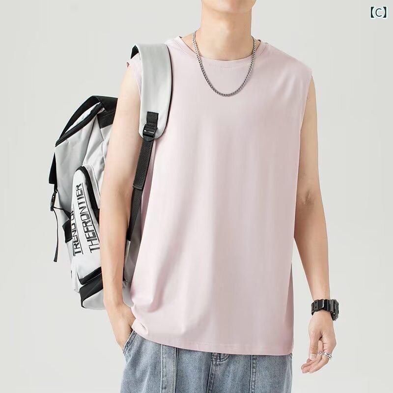 Tシャツ メンズ ノースリーブ ゆった メンズファッション 豊富な品揃え A:白 B:黄 C:ピンク D:コーヒー E:ロイヤルブルー F:くすみ青 G:濃いグレー H:ターコイズ I:草緑 J:カーキ K:オレンジ L:真紅 M:レンガ N:黒 M L XL 2XL 3XL