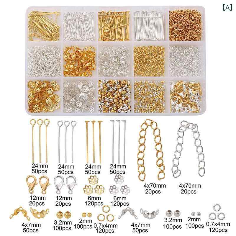 DIY アクセサリー パーツ セット 日用品雑貨 文房具 手芸 豊富な品揃え A:金/銀 約1260個1セット B:金色 約1260個1セット C:銀色 約1260個1セット