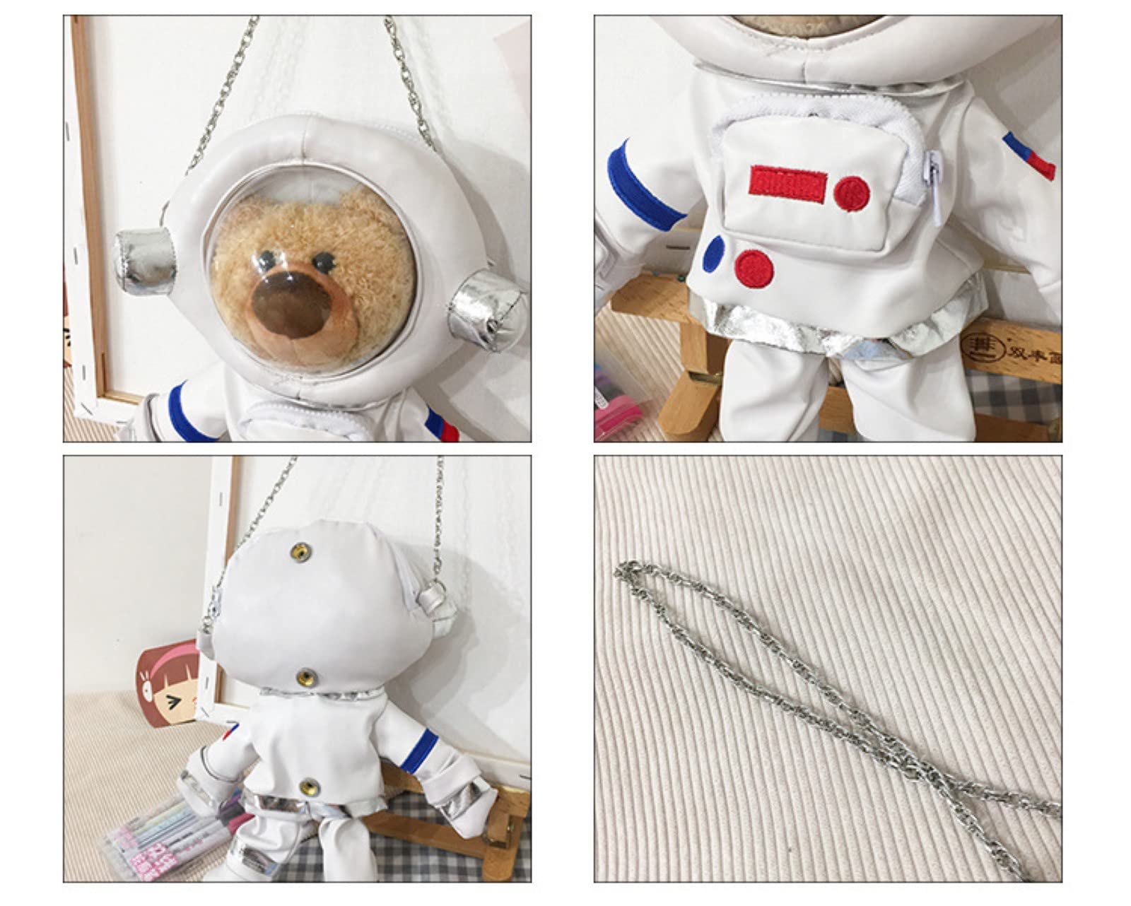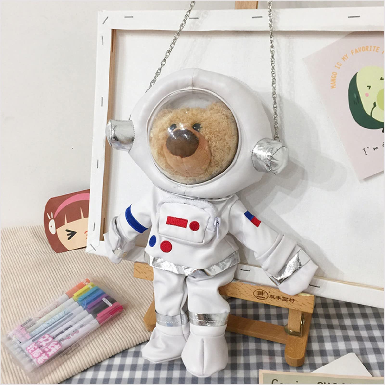 宇宙飛行士バッグ 女性用 かわいいクロスボディバッグ レザー 宇宙飛行士 ショルダーバッグ バックパック 漫画 スペースベア デザインバッグ 携帯電話バッグ レディース ガールズ メッセンジャーバッグ