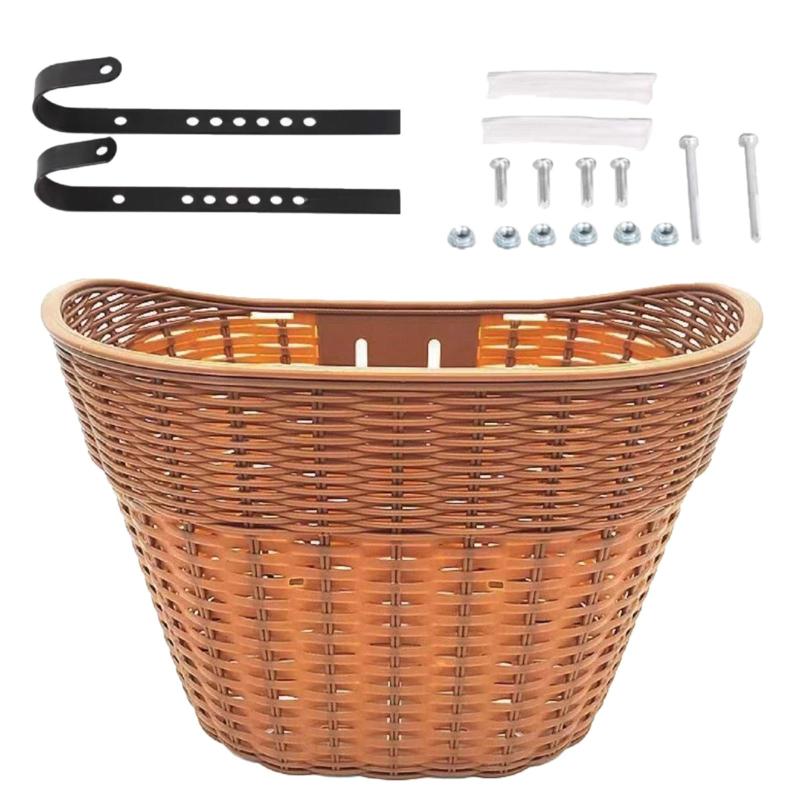 自転車フロントバスケット 自転車バスケ 茶色 黒