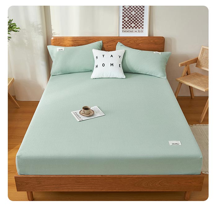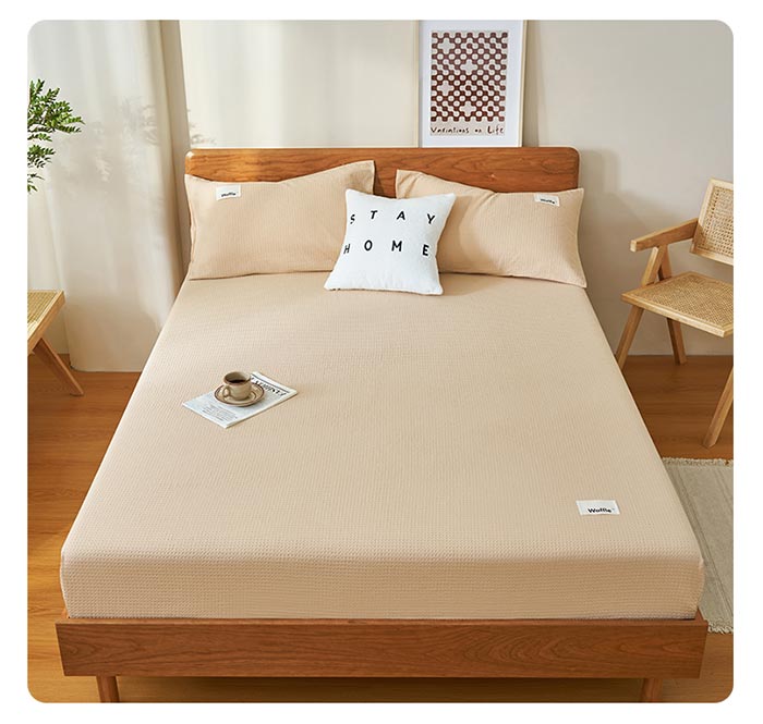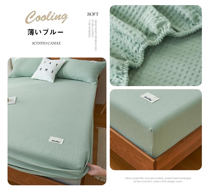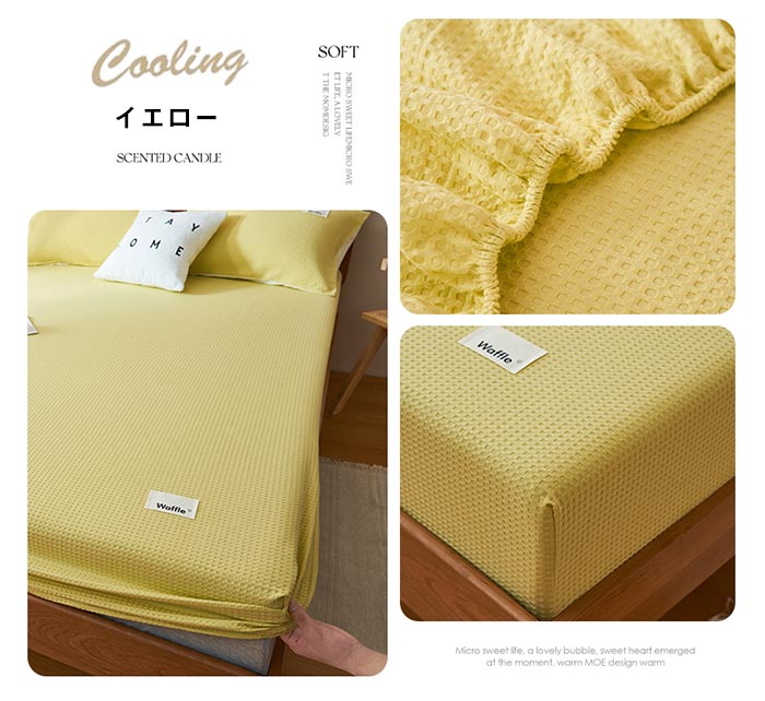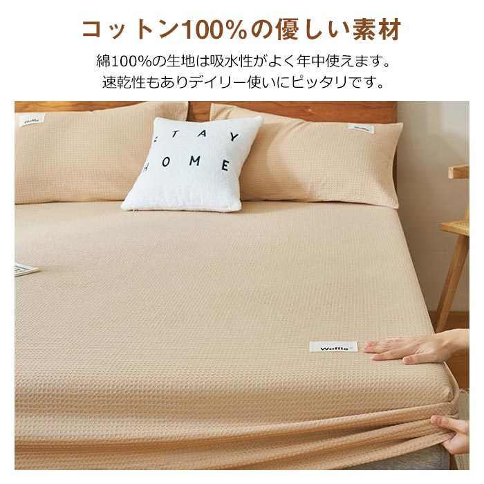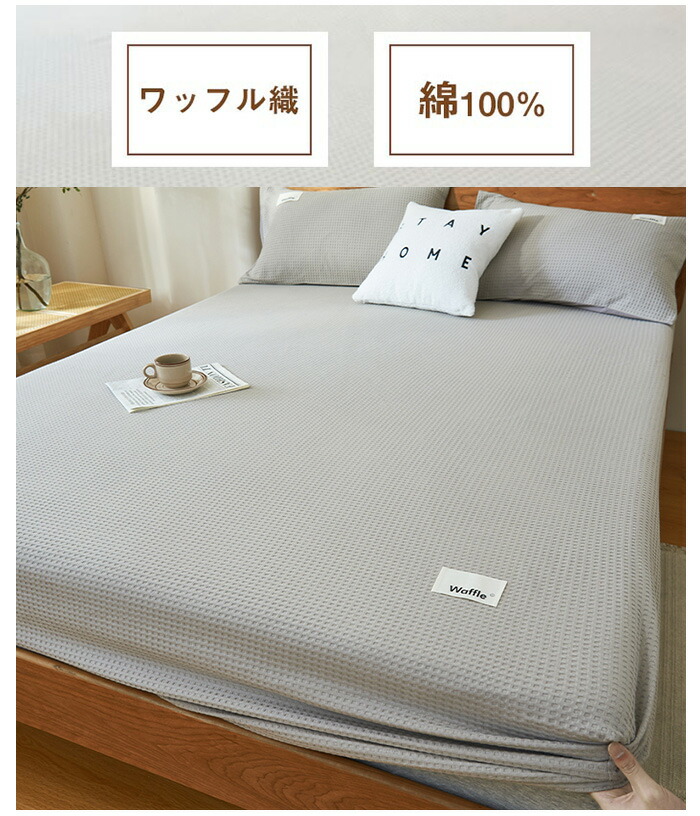 ワッフル織り 綿100% ボックスシー 寝具 寝具カバー シーツ ボックスシーツ 続々登場 グリーン イエロー ブルー グレー 薄いブルー 杏色 ブラウン
