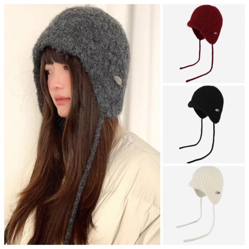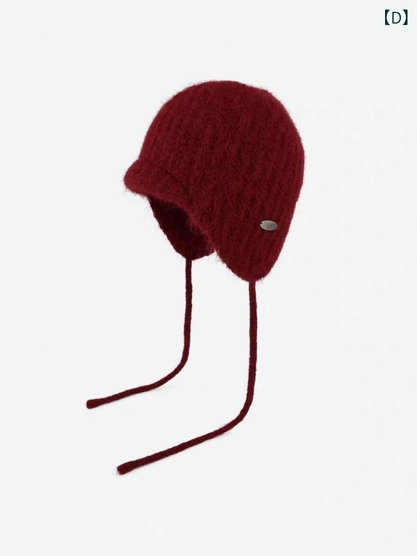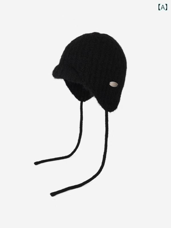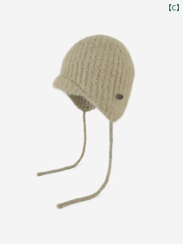 ニット帽 レディース かわいい 紐付き 帽子 レディース帽子 ニット帽 通販 A:黒 B:アイボリー C:カーキ D:ワインレッド E:灰