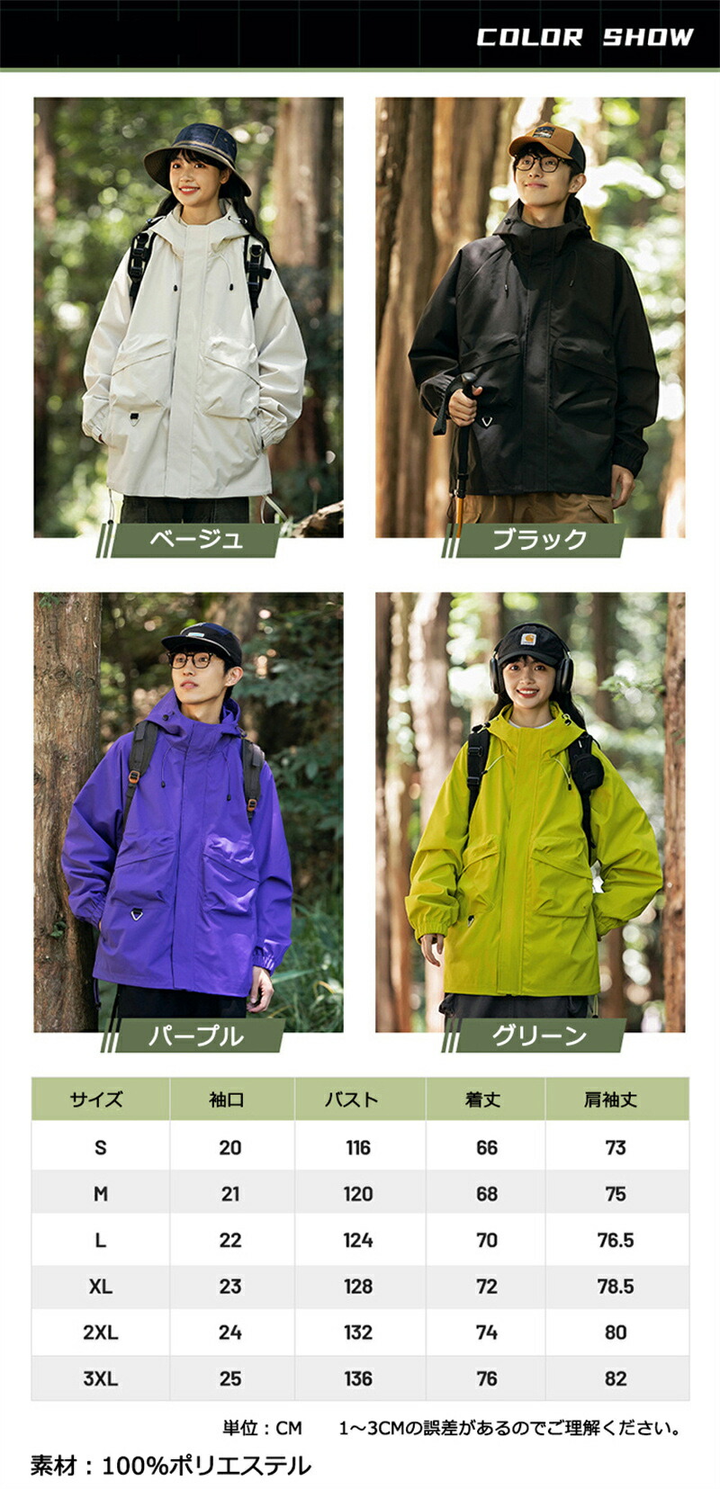 マウンテンパーカー ジャケット メンズ メンズファッション 早い者勝ち ベージュ ブラック パープル グリーン S M L XL 2XL 3XL