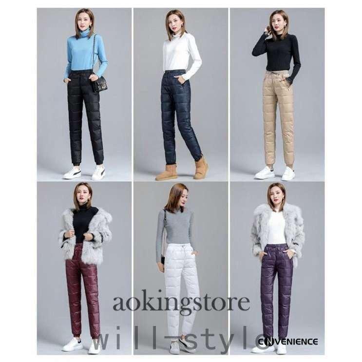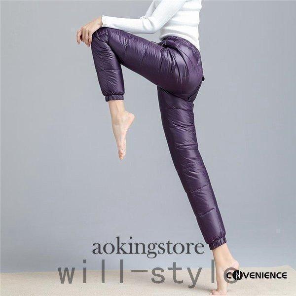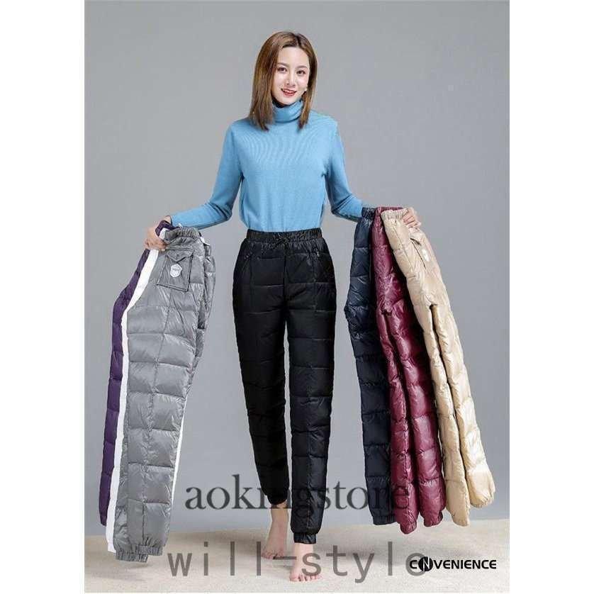 ダウンパンツ レディース 暖かいパンツ レディースファッション 特集 ブラック ネイビー ワインレッド グレー パープル M(お勧め体重45-52KG) L(お勧め体重52-60KG) XL(お勧め体重60-67KG) 2XL(お勧め体重67-75KG)