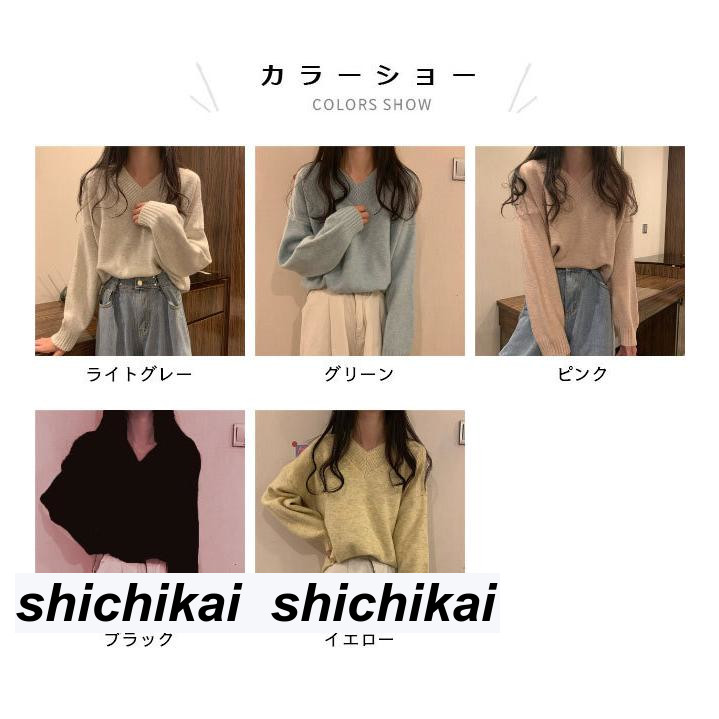 Vネック ニットセーター レディース トップス ニット セーター セーター 豊富な品揃え ライトグレー グリーン ピンク ブラック イエロー S M L XL 2XL