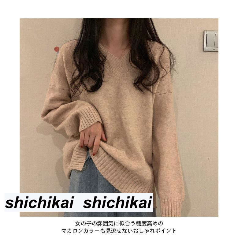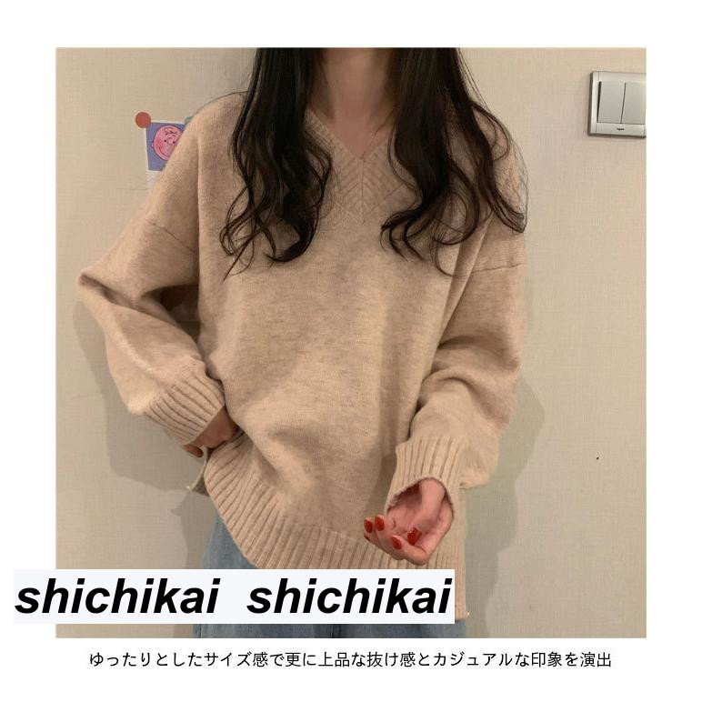 商品名 Vネック ニットセーター レディース 厚手 セーター ゆったり ニットトップス プルオーバー Vネックセーター きめ細かい おしゃれ