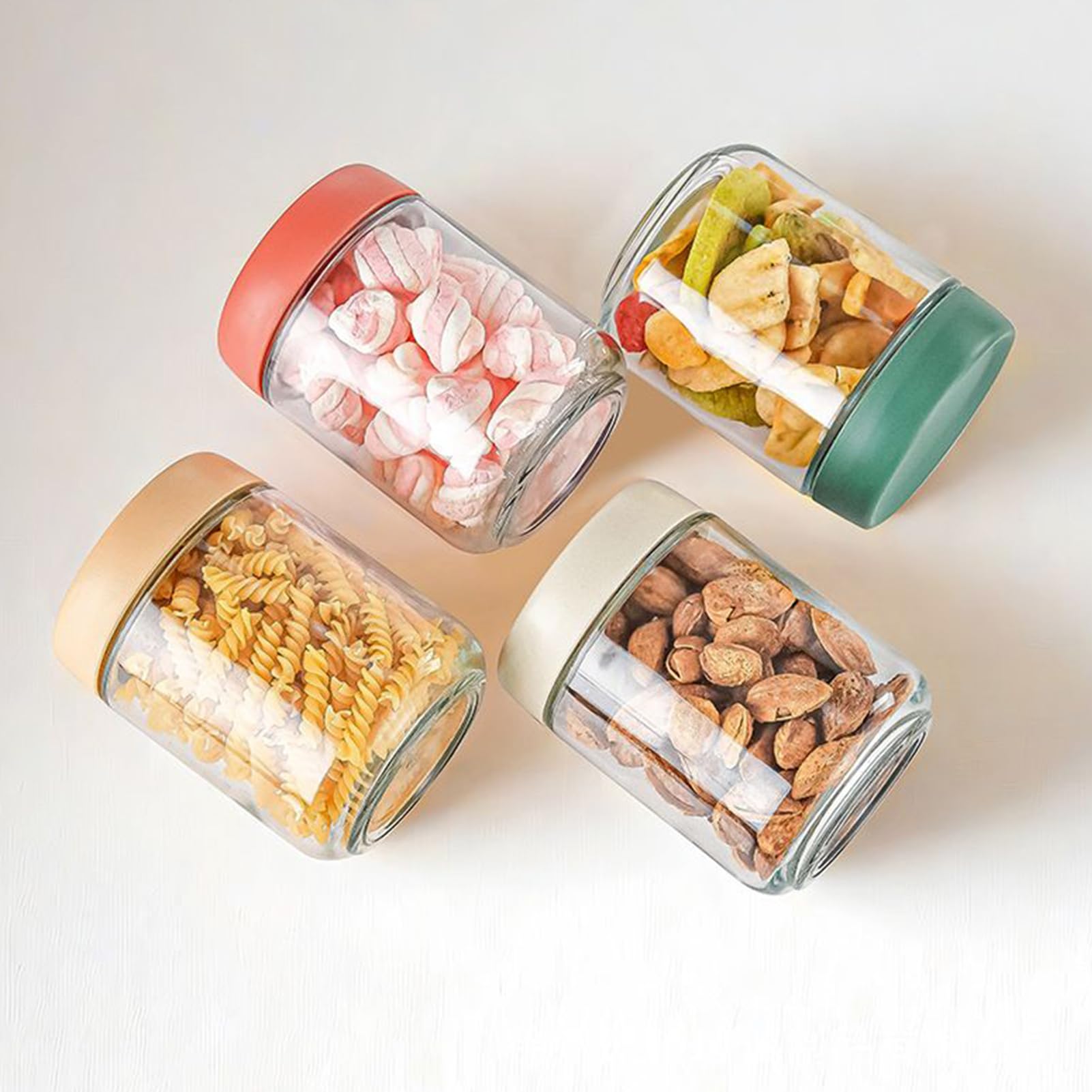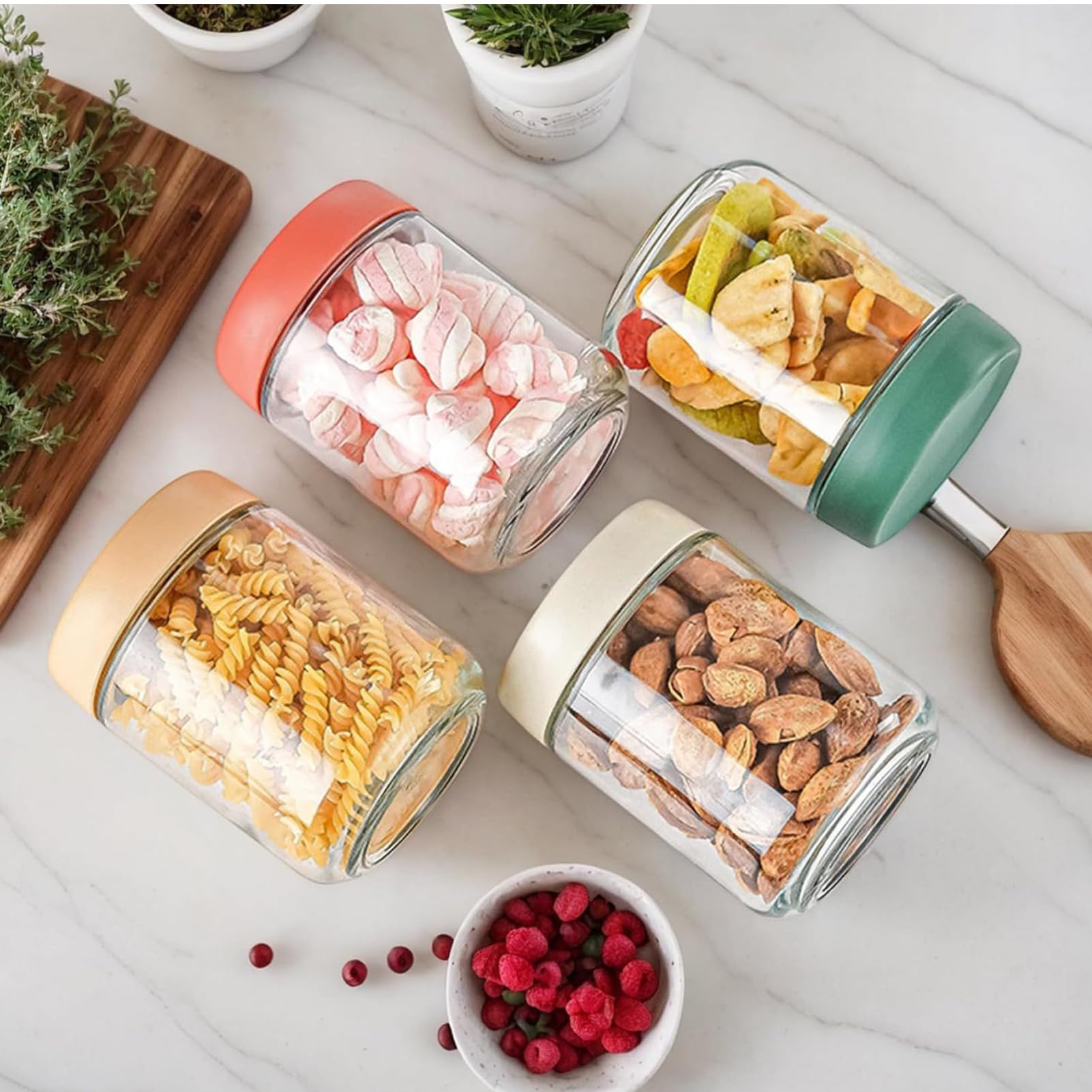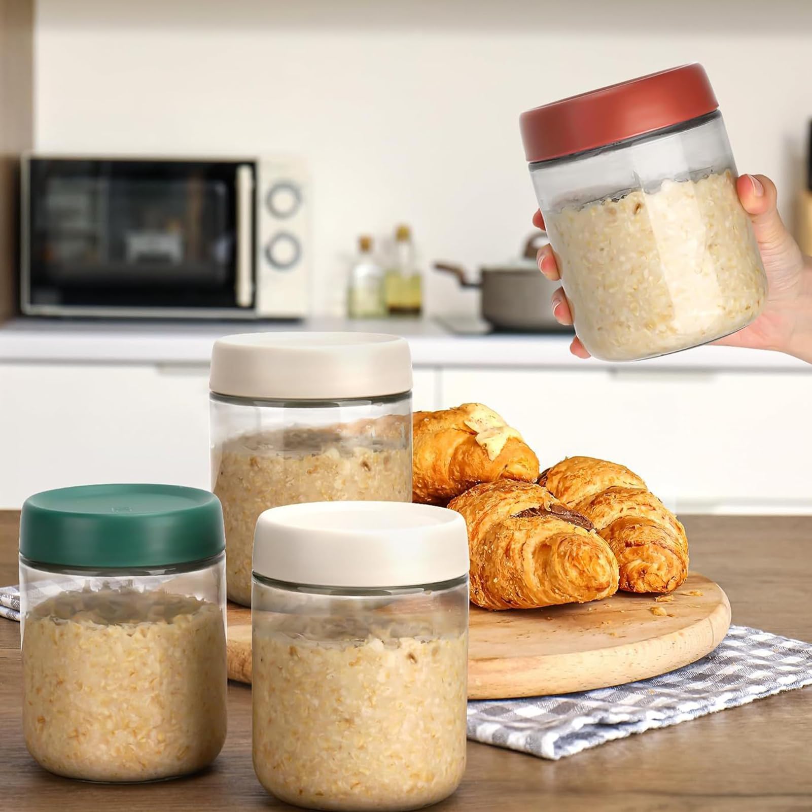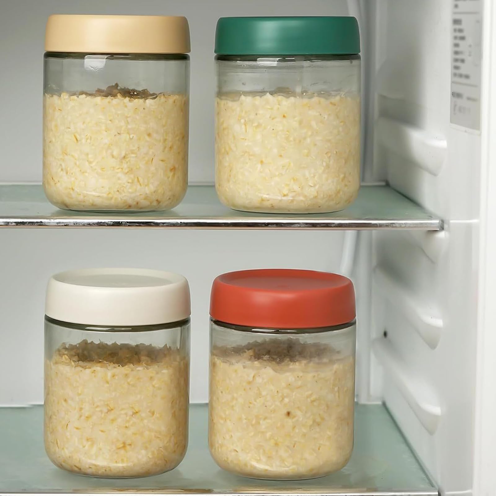 オーバーナイトオーツ用ガラスジャー - 密閉ガラス容器 蓋付き 4個セット広口ストレージコンテナ 野菜ソース シリアルヨーグルト豆ミルクスープ収納 サラダドレッシング