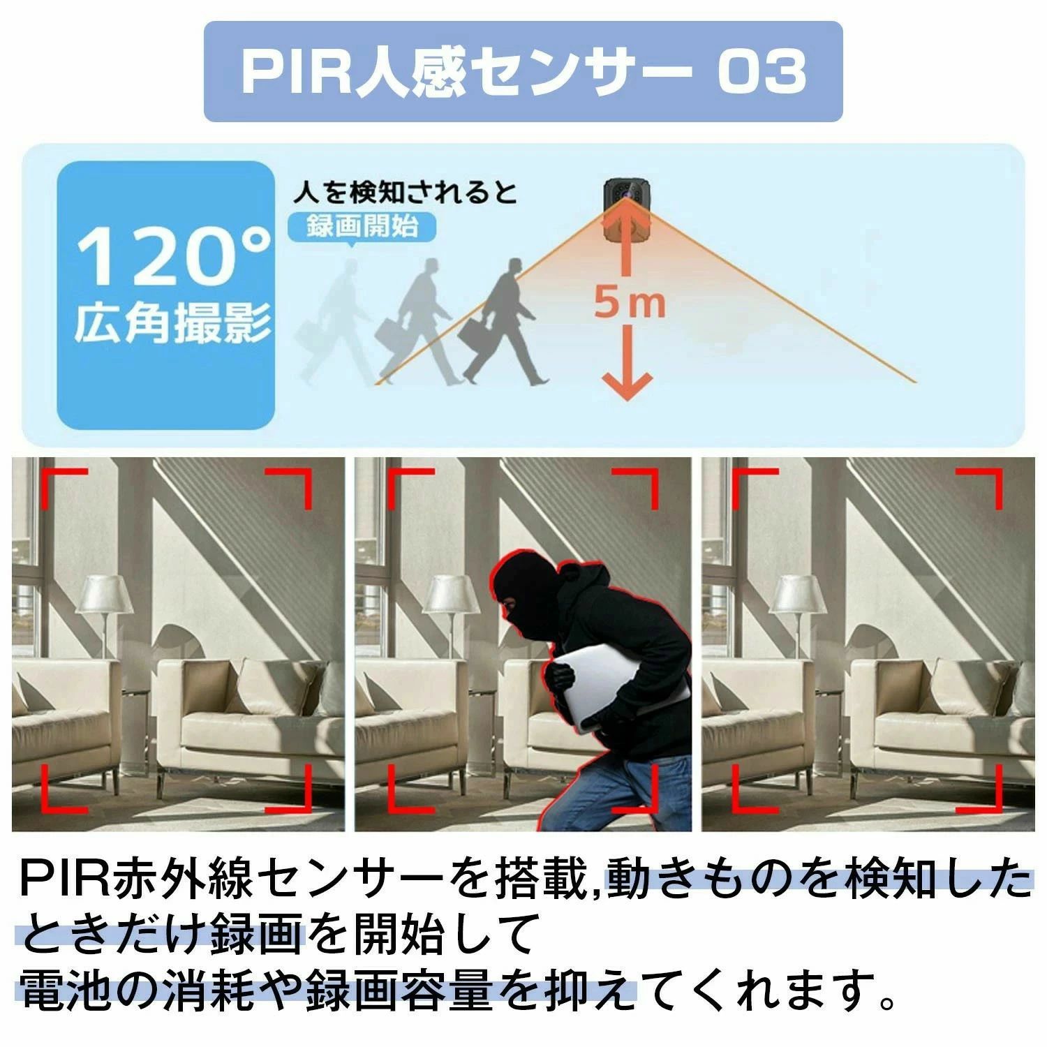 動きを検知して自動撮影を開始!メモリの無駄を省き、製品長い時間の録画を増やすことができます。