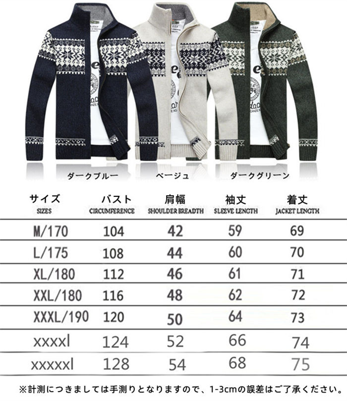 メンズ ニットジャケット ニット セー トップス ニット セーター 豊富な品揃え ベージュ ダークグリーン ダークブルー M L XL 2XL 3XL 4XL 5XL