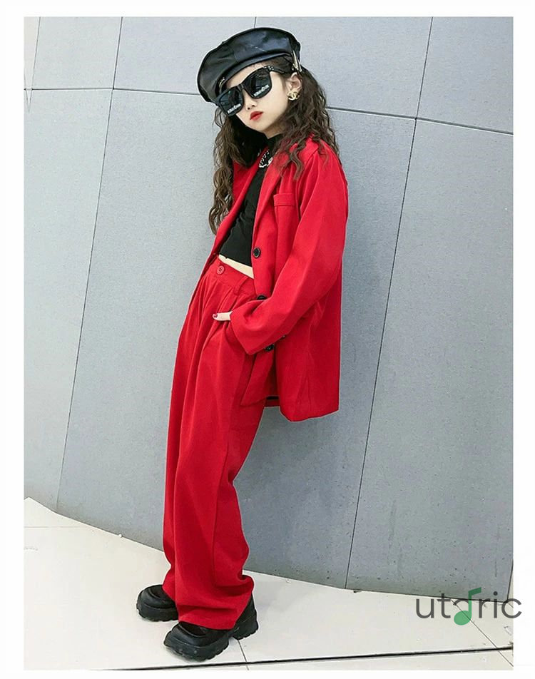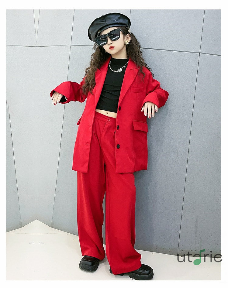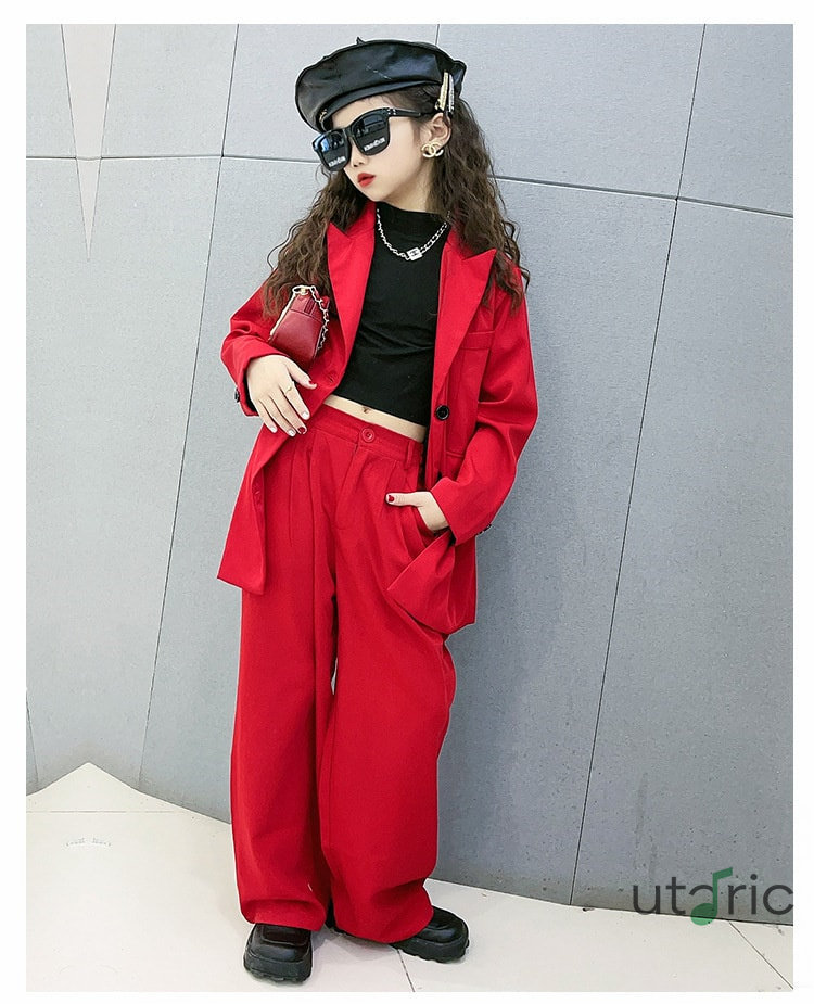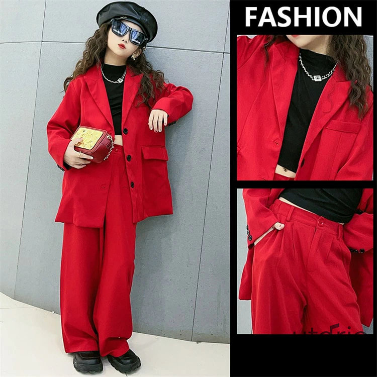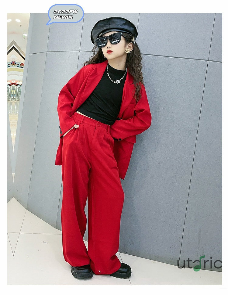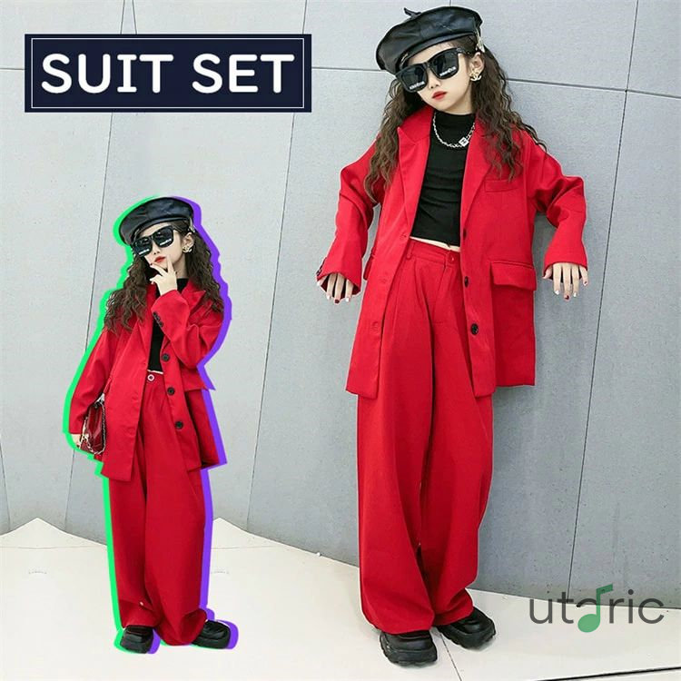 黒 赤 キッズダンス衣装 スーツ 女の キッズ スーツ カジュアルセットアップ カジュアルパンツセット 続々登場 120cm 130cm 140cm 150cm 160cm 170cm レッド ブラック