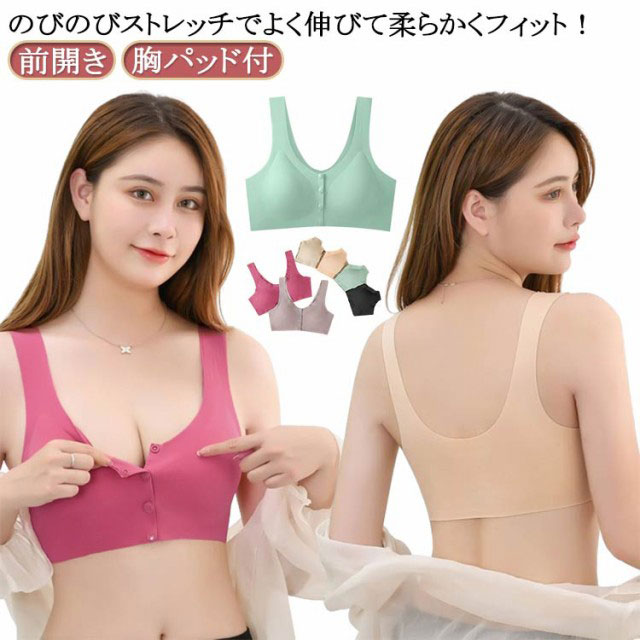 前あき ブラ 伸縮 肌着 ラクブラ ひ レディース インナー 下着 ブラジャー 通販 グリーン ブラック ベージュ ホワイト ピンク ブラウン M L XL 2XL 3XL 4XL