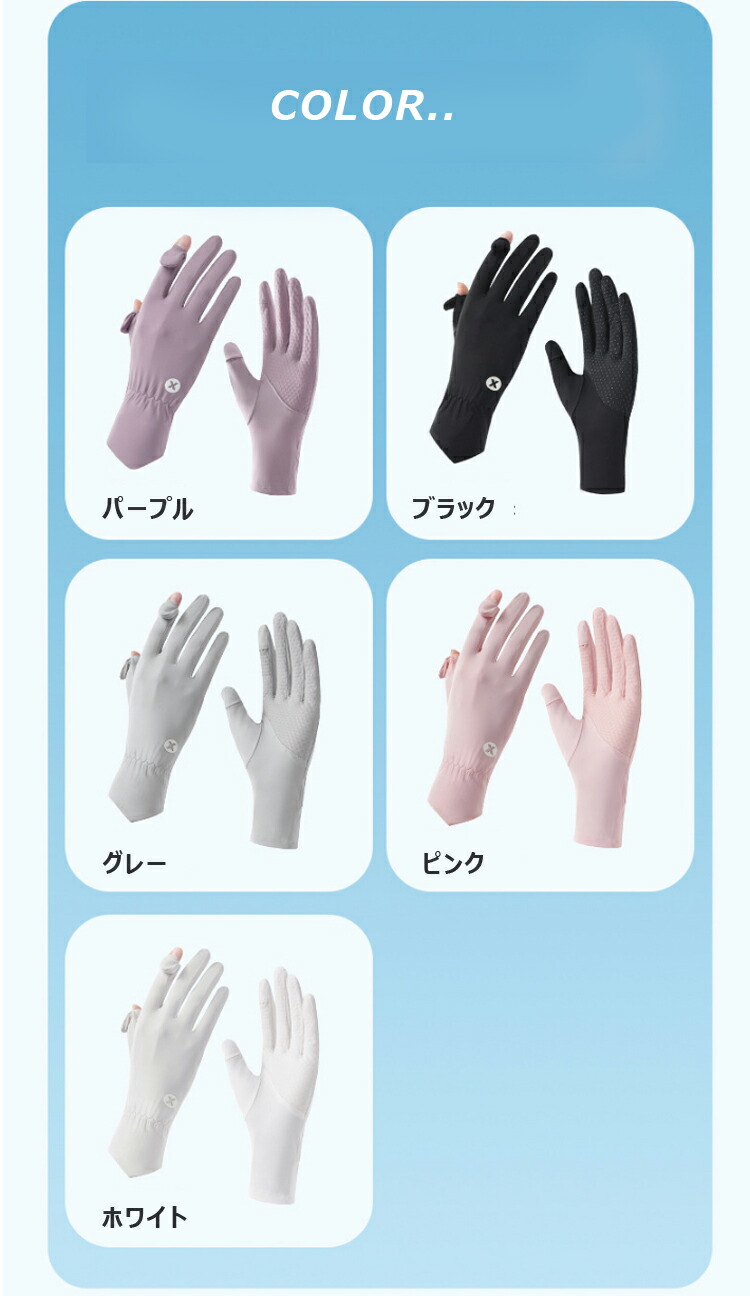 UVカット 手袋 ゴルフ バイク 紫外 スポーツ アウトドア 通販 ピンク ブラック パープル グレー ホワイト