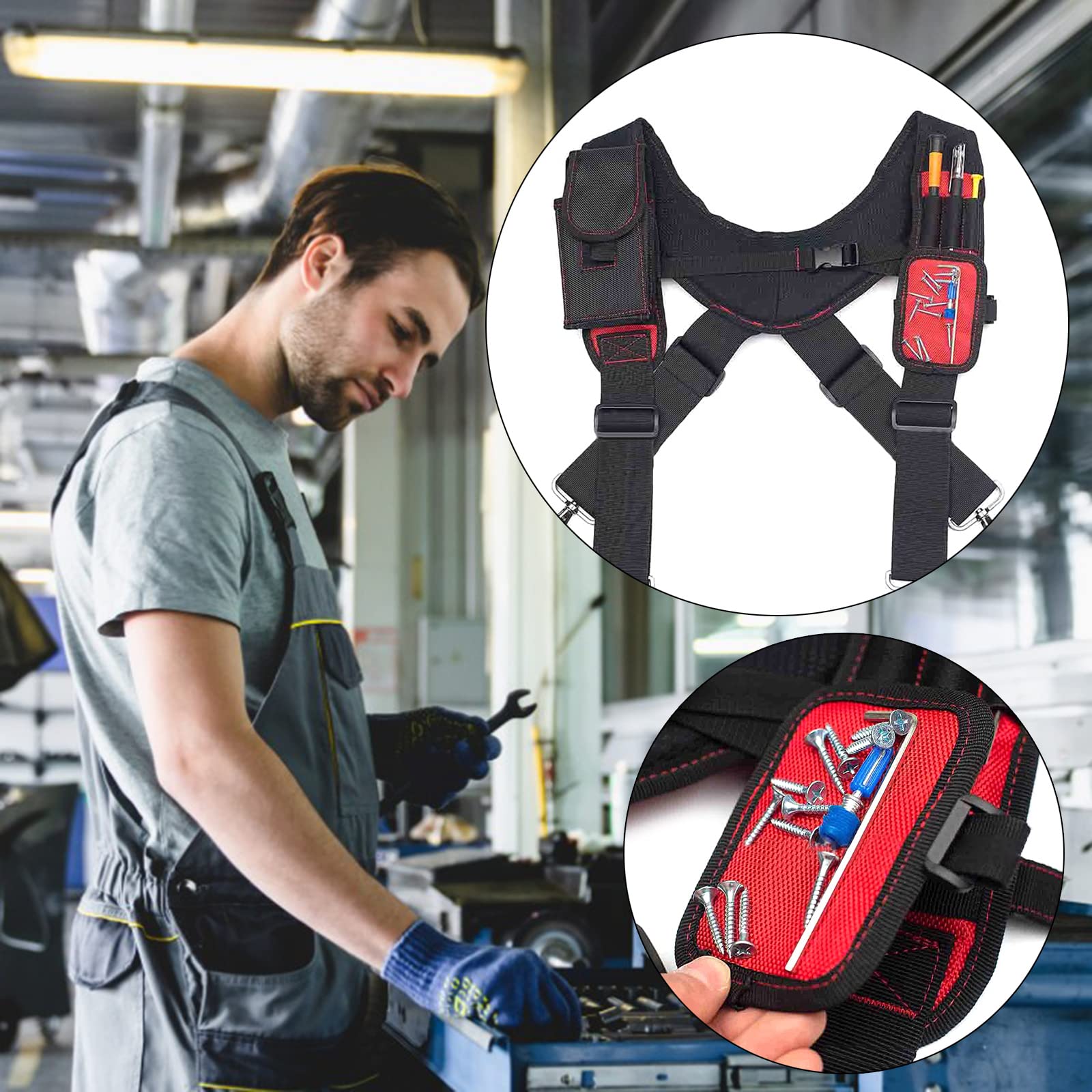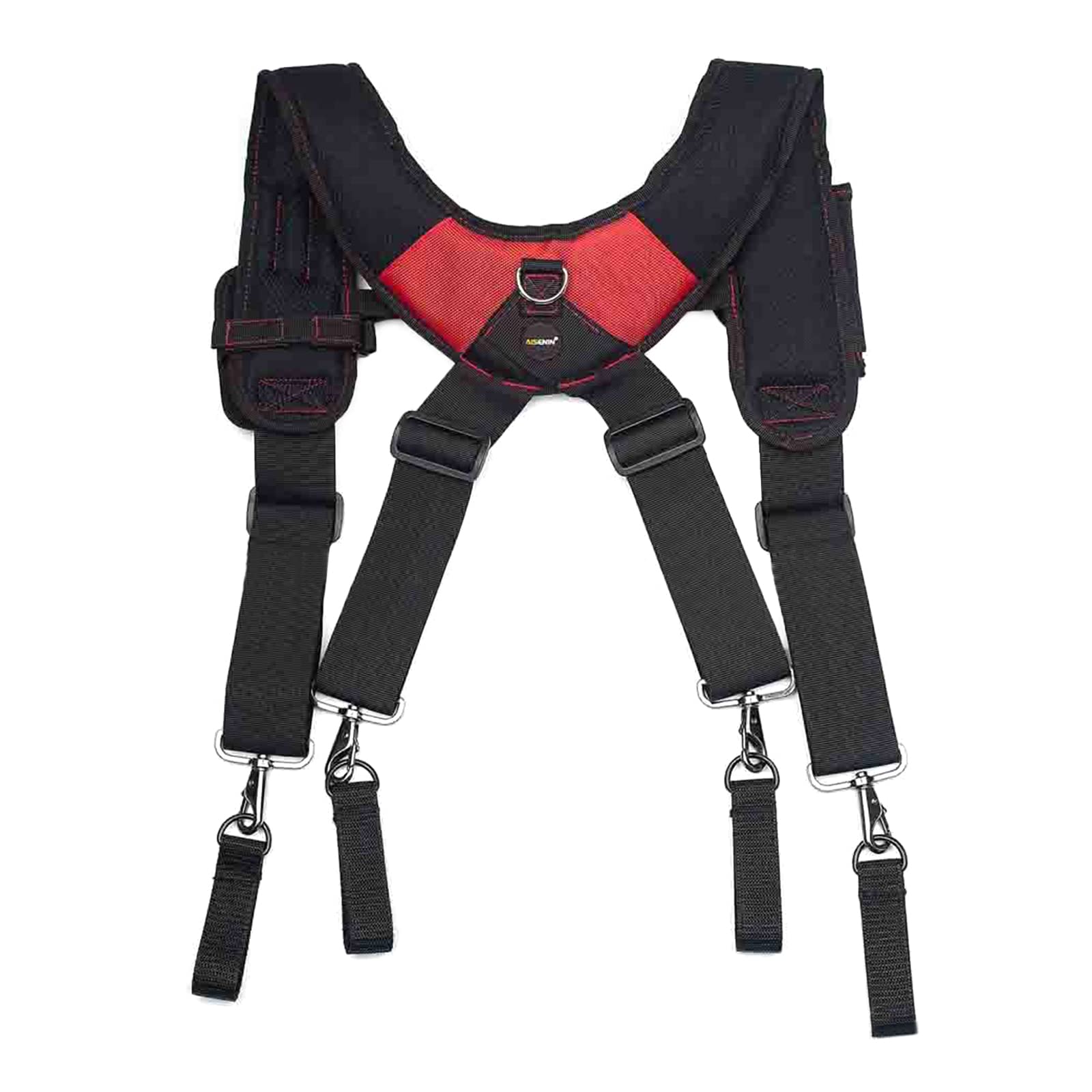ツールベルトサスペンダー ワークサスペンダー 柔軟で調節可能なストラップ、可動パッド入りショルダー、4つのループアタッチメント付き
