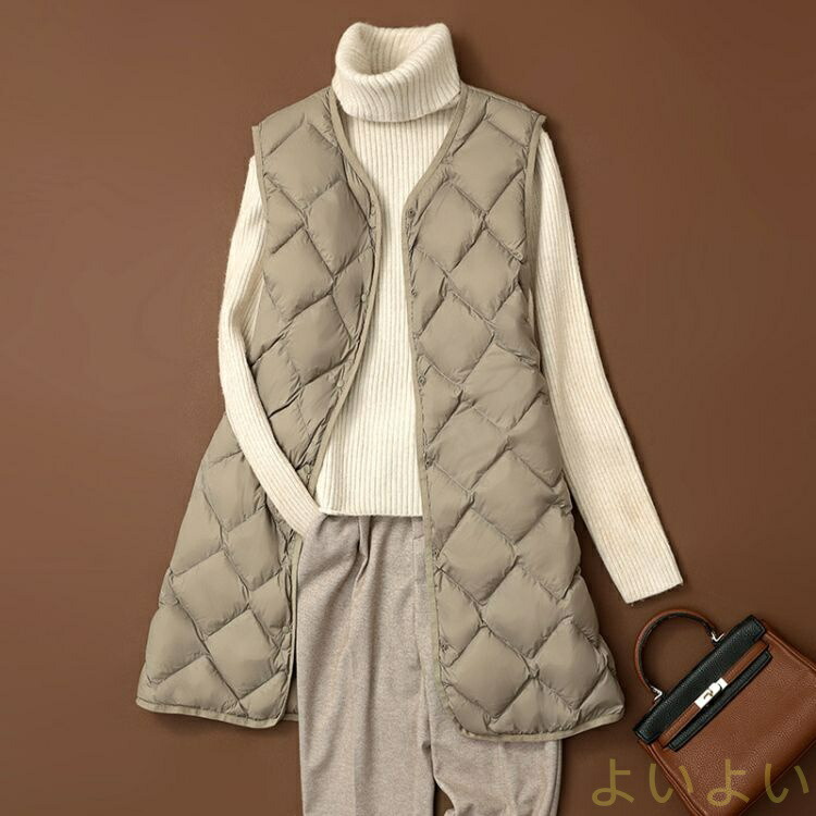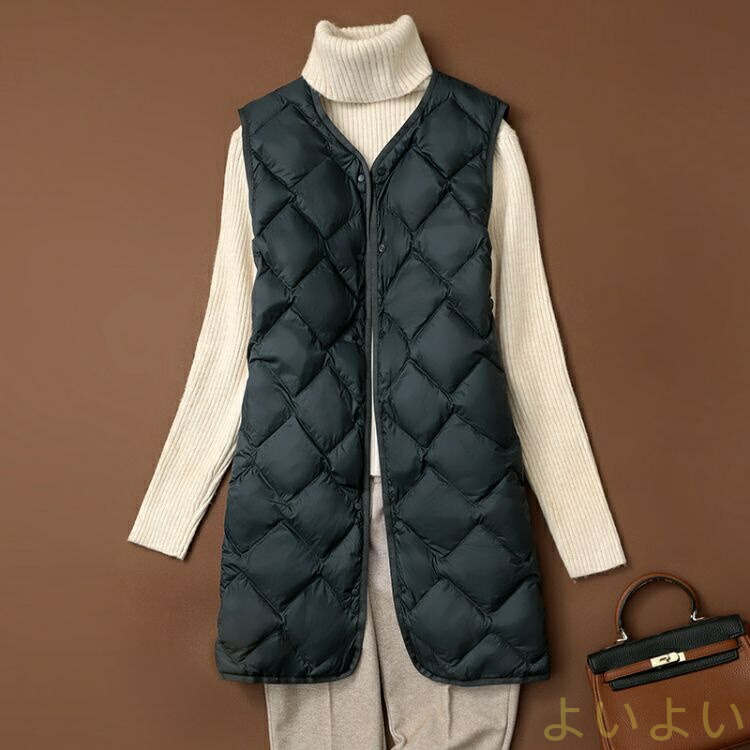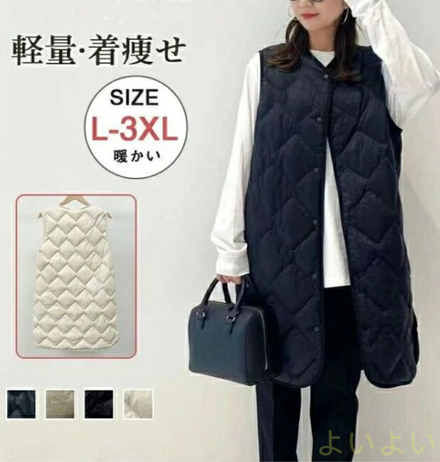 ダウンベスト レディース ロング丈 ベ コート ジャケット 豊富な品揃え ベージュ グリーン カーキ ブラック L XL 2XL 3XL