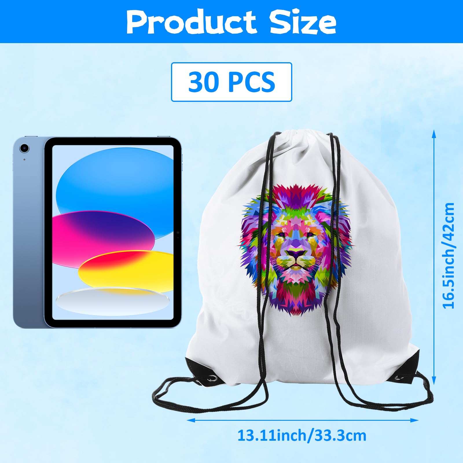 30枚 ホワイト ドローストリングバッグ バルクホワイト昇華巾着バッグ 再利用可能 シンチバッグ ドローストリング ホワイト巾着バッグ ジム スポーツ パーティー クラフト用 , ホ 旅行