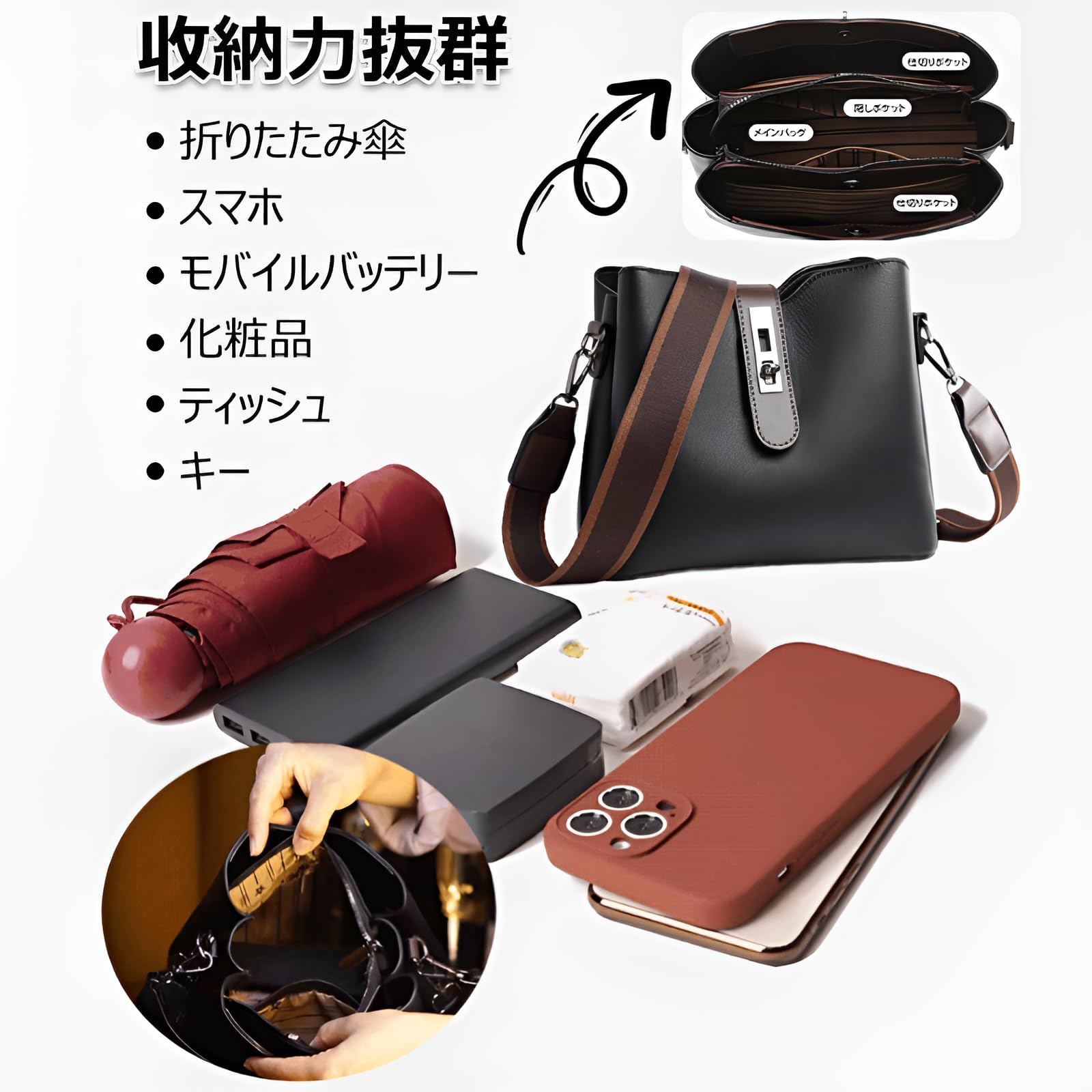 栃木レザー レザーバッグ ハンドバッグ レディース 大容量で多層収納クロスボディ バケットバッグ 手持ち 見え シンプル 小さめ 柔らかい 自立 可愛い
