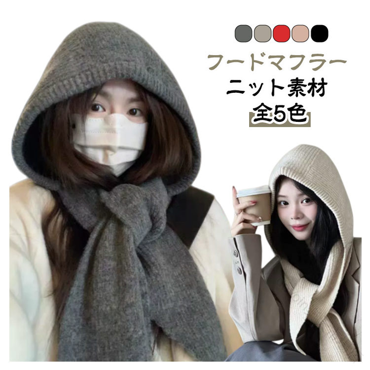 フード マフラー ニット フードマフラ バッグ 小物 ブランド雑貨 特集 グレー ベージュ キャメル ブラック レッド