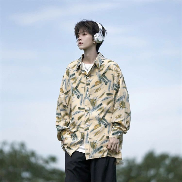 メンズ 柄シャツ トップス 長袖シャツ トップス カジュアルシャツ 新作 イエロー グリーン ブルー M L XL XXL 3XL 4XL 5XL