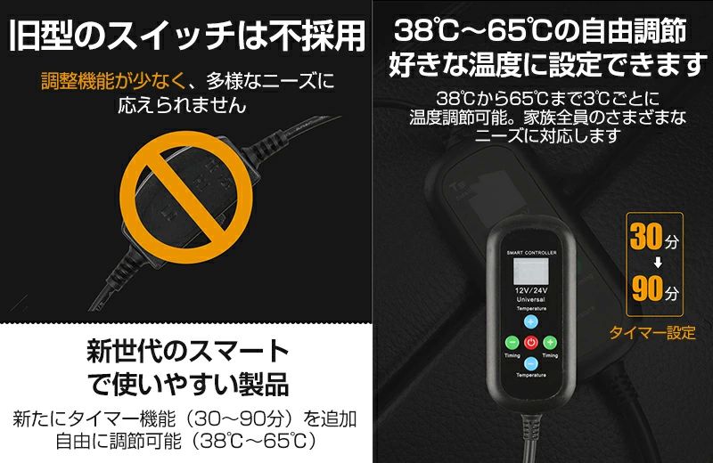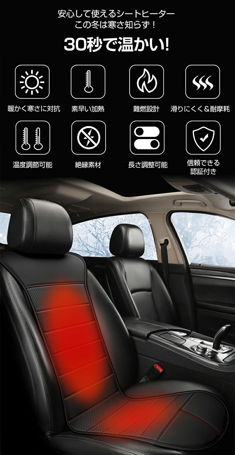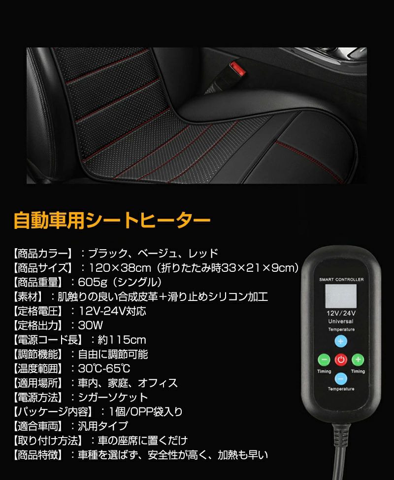 ヒートシート 過熱防止 タイマー 12 ブラック ベージュ ワインレッド