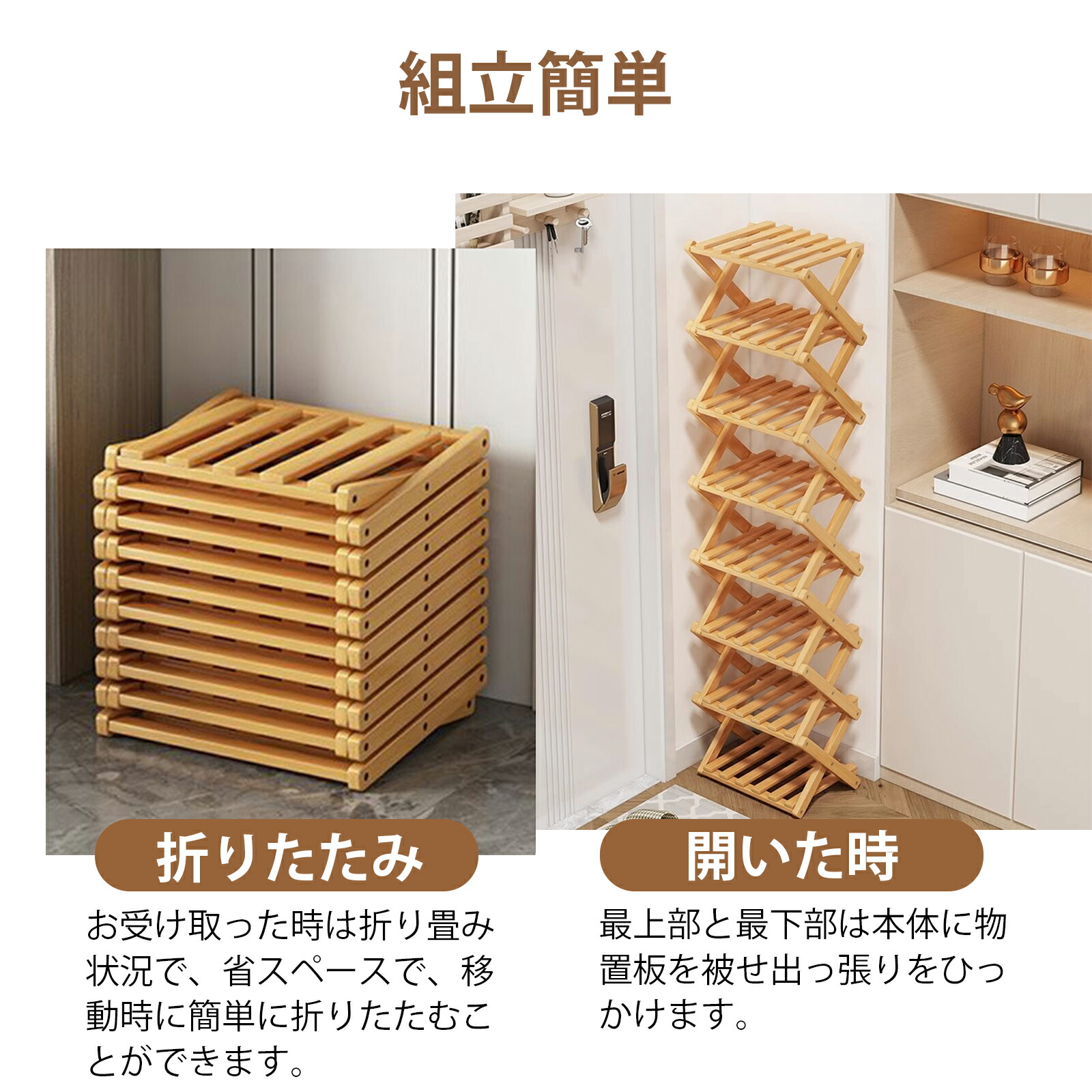 シューズラック スリム 組立不要 靴箱 ナチュラル ホワイト ブラック ブラウン 2段 4段 5段 6段 7段 8段 3段